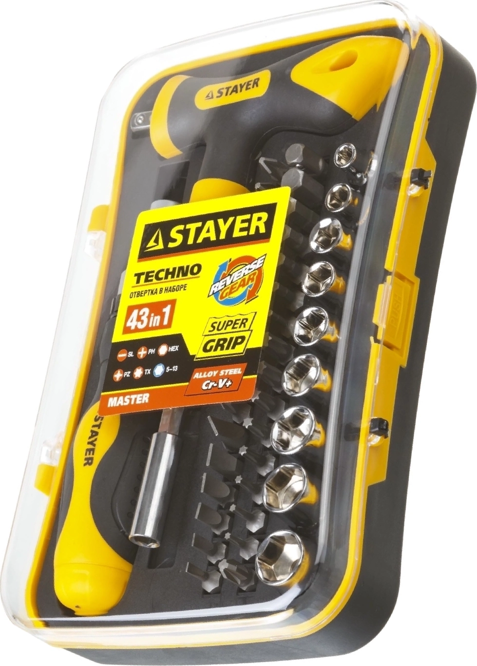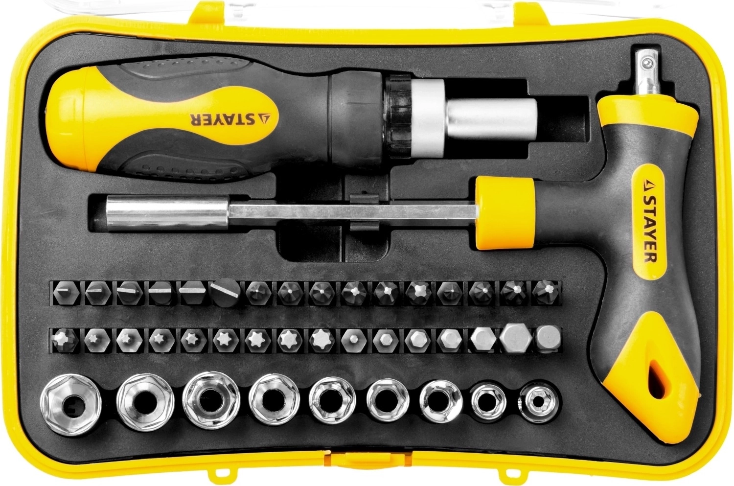 Реверсивная отвертка с насадками STAYER T-Compact-43, 43 предм.
