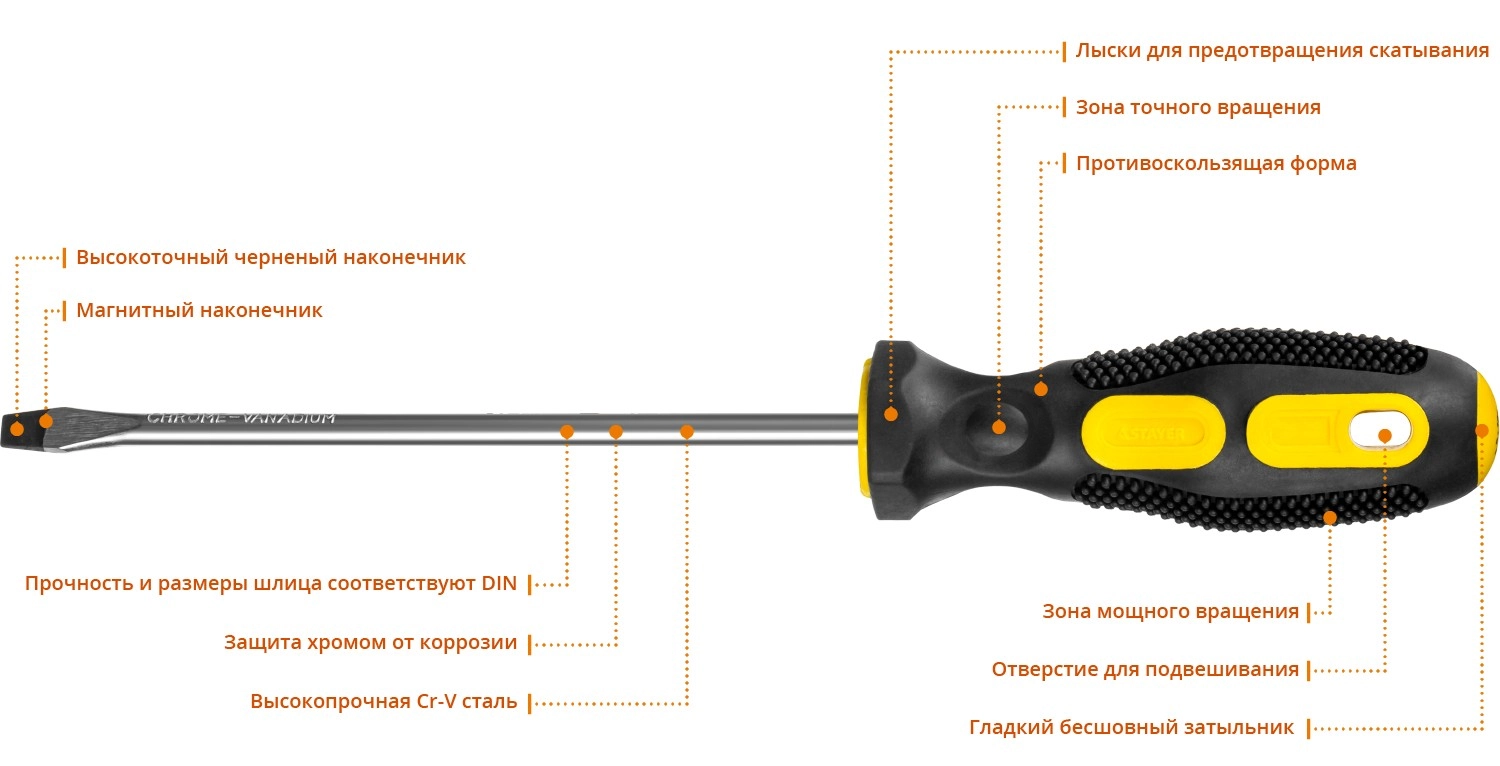 - Специально сконструированная двухкомпонентная рукоятка оптимальной формы обеспечивает надежный и комфортный захват