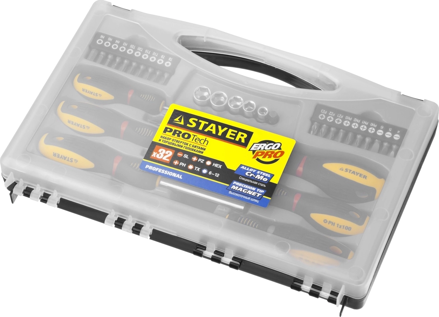 Professional STAYER ProTech, 32 предм., набор отверток с насадками