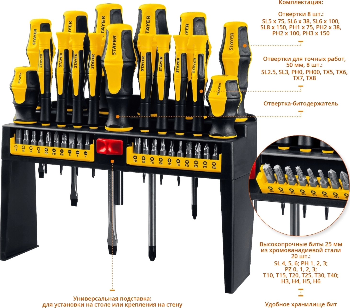 Набор отверток с насадками STAYER Hercules-Pro-37, 37 предм.
