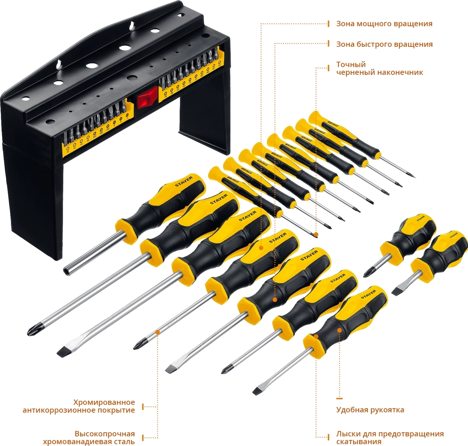 Многофункциональный набор слесарных отверток и отверток для точных работ в стойке. Биты и стержни отверток изготовлены из высококачественной Cr-V стали