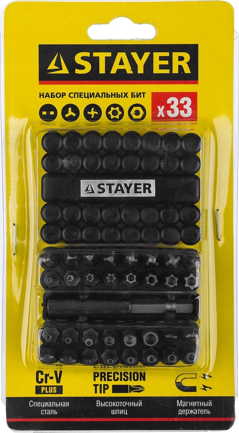 Набор специальных бит с магнитным адаптером STAYER 33 шт