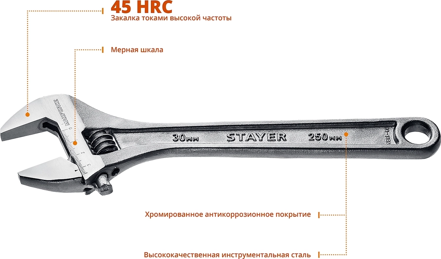 Разводной ключ STAYER MAXFORCE, 250/30 мм
