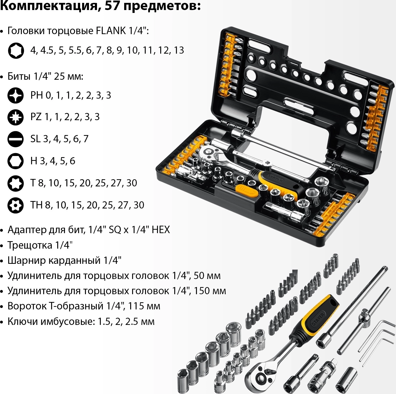 Универсальный набор инструмента STAYER Auto 57, 57 шт