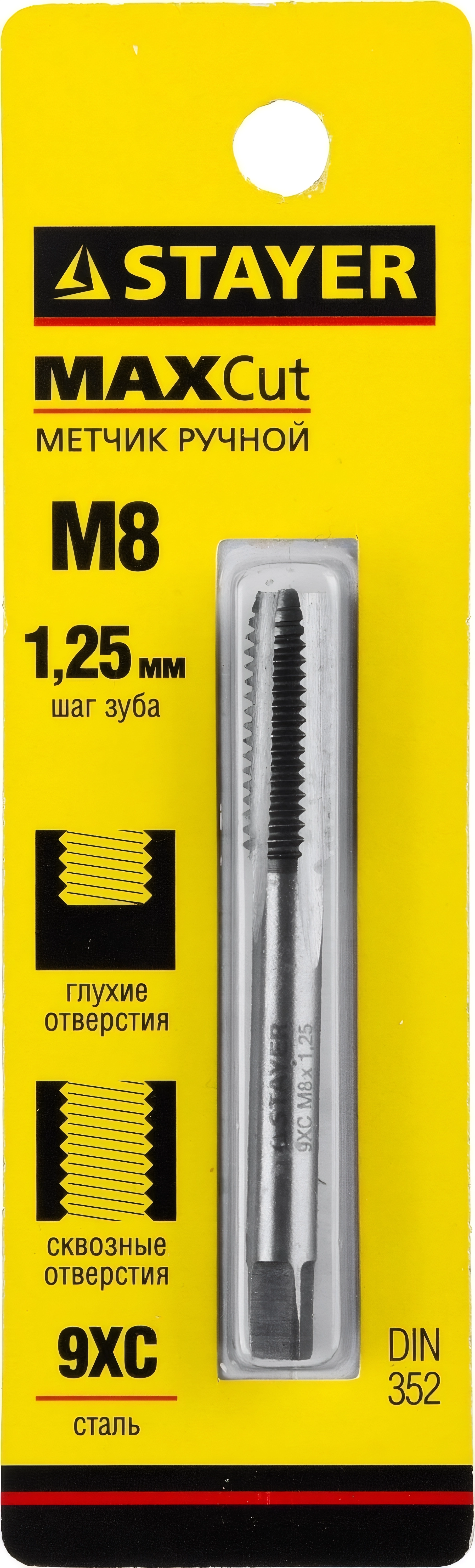 Одинарный метчик для сквозных и глухих отверстий STAYER M8 х 1.25