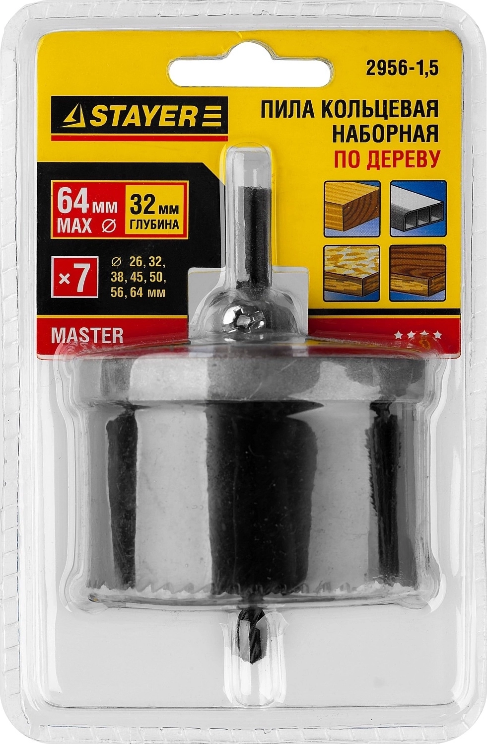Наборная кольцевая пила по дереву (2956-1.5) STAYER 7 шт, (26-32-38-45-50-56-64 х 32 мм)