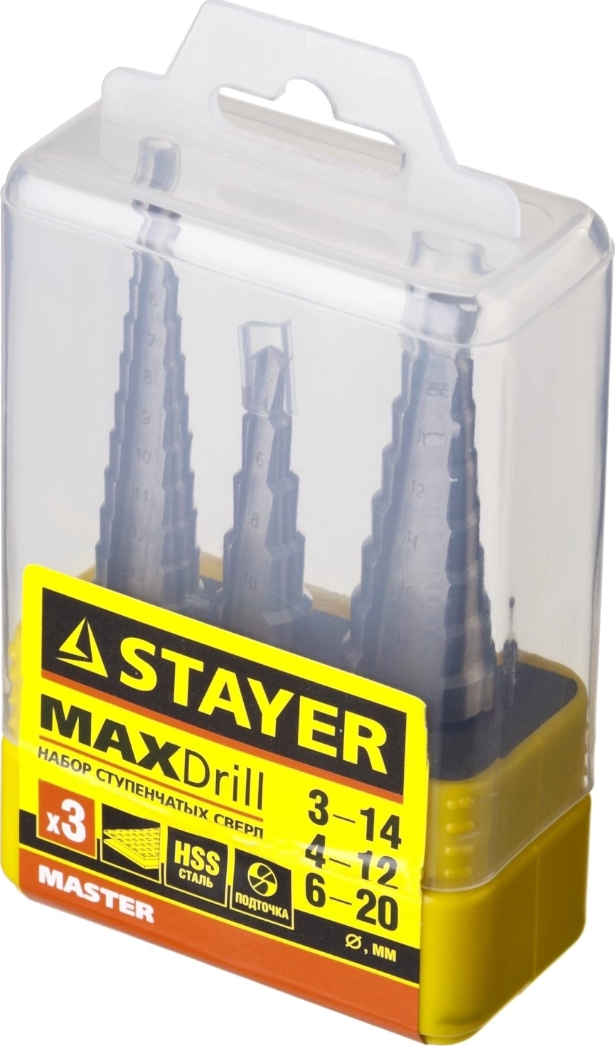 Набор ступенчатых сверл STAYER 3 шт, 3-20 мм, сталь HSS