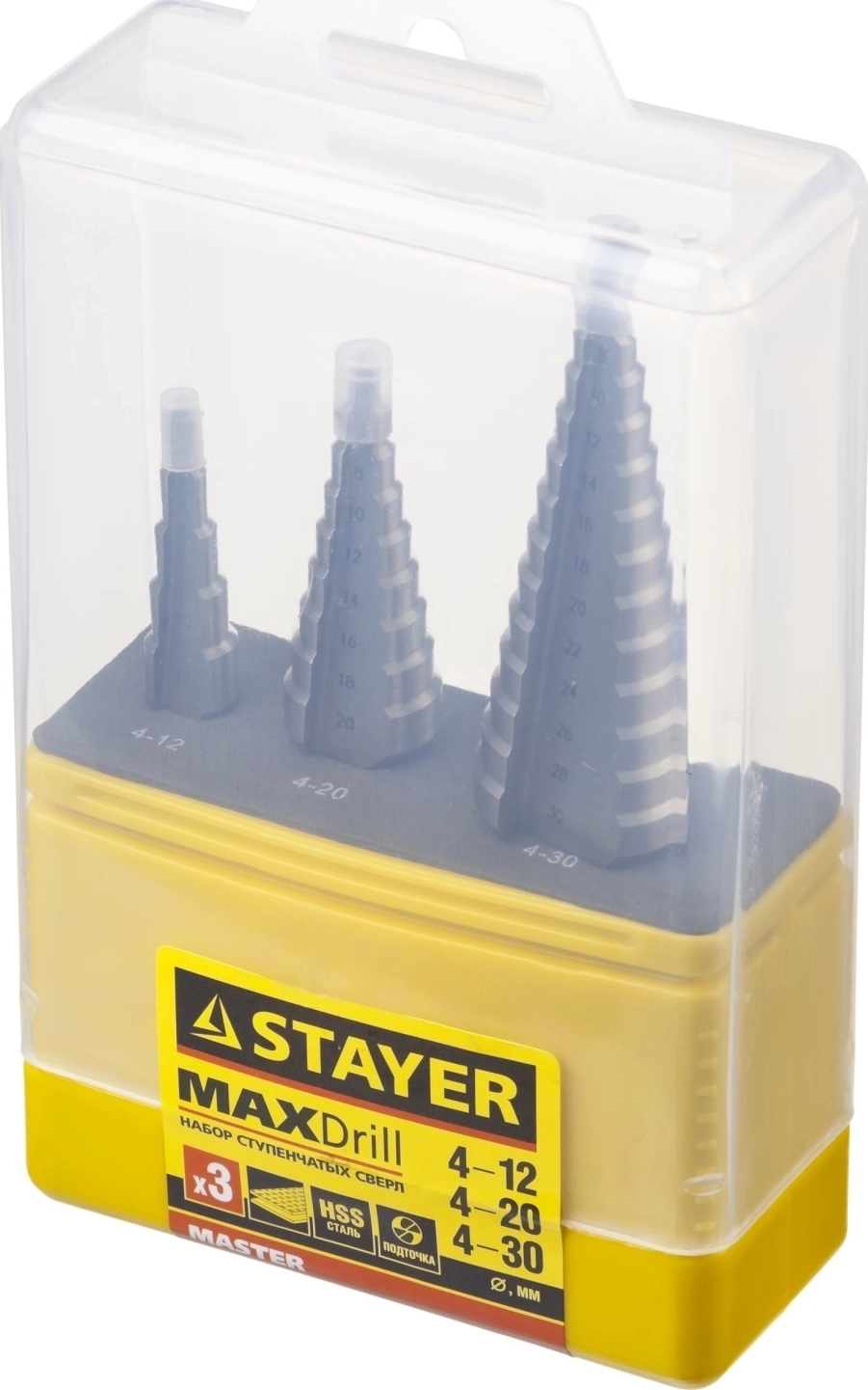 Набор сверл ступенчатых STAYER 3 шт, 4-30 мм, сталь HSS