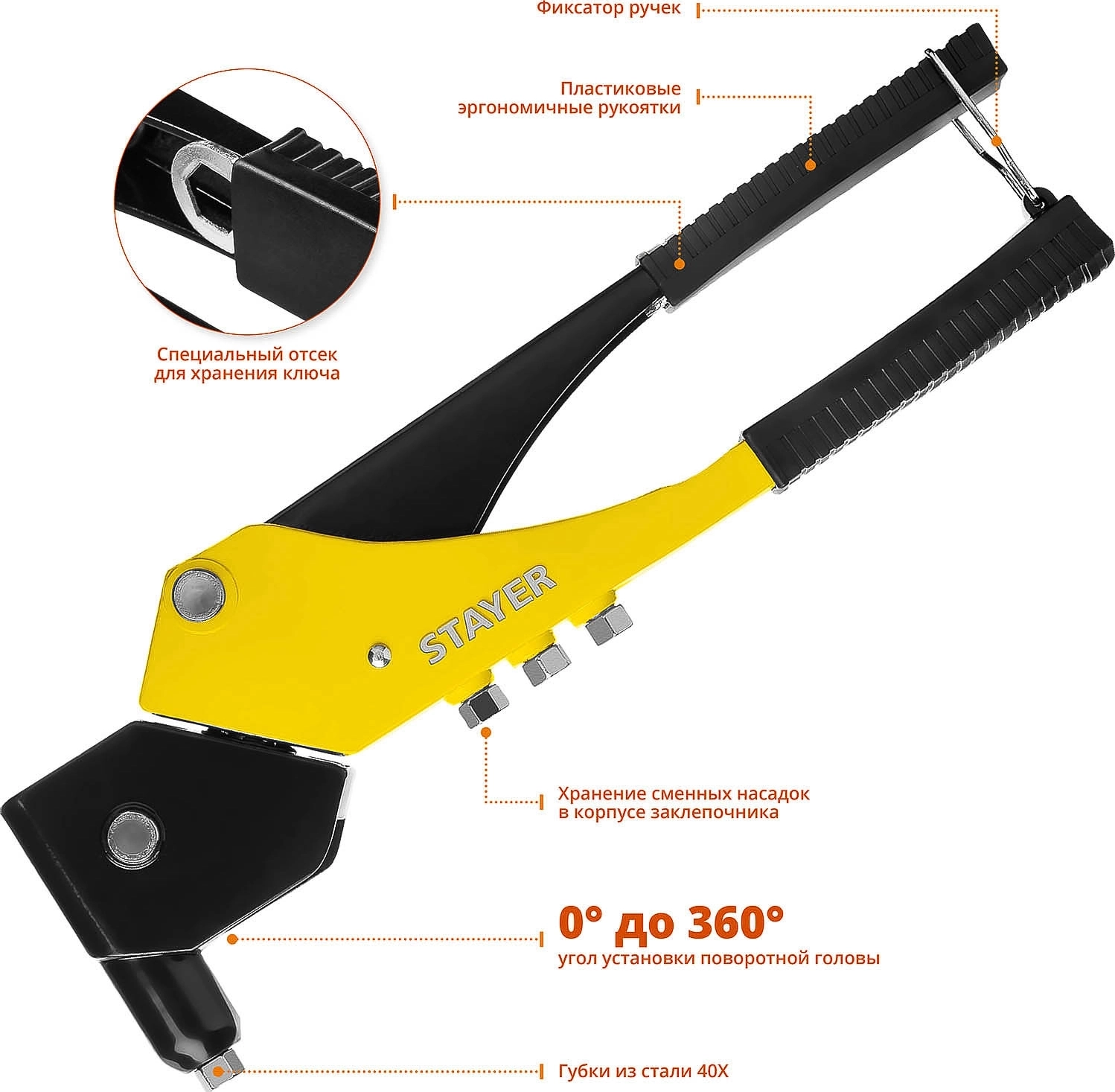 Поворотный заклёпочник STAYER MS-360, 0 - 360°, 2.4 - 4.8 мм, 280 мм