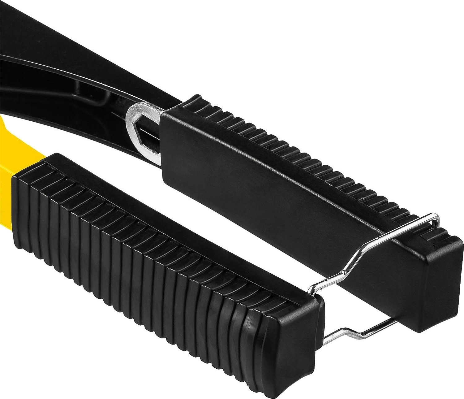 Применяется для установки алюминиевых вытяжных заклепок. Способ применения 1. Просверлите сквозное отверстие в скрепляемых материалах. 2. Установите заклепку в просверленное отверстие. 3. Раздвиньте ручки заклепочника, вставьте стержень в отверстие головки. 4. Сжимайте и разжимайте рукоятки заклепочника до момента отламывания стержня.