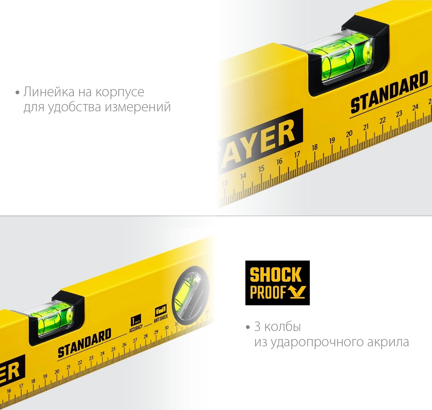 Уровень STAYER STANDARD, 400 мм, с линейкой