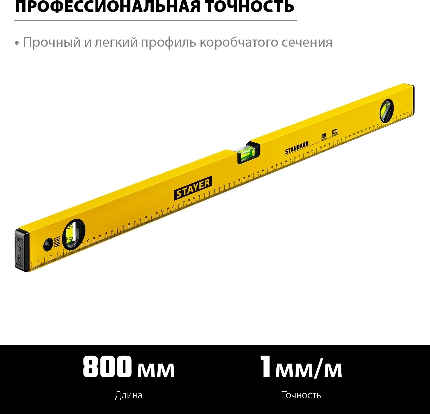 Уровень STAYER STANDARD, 800 мм, с линейкой