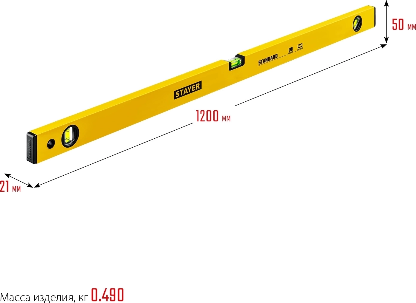 Уровень STAYER STANDARD, 1200 мм, с линейкой
