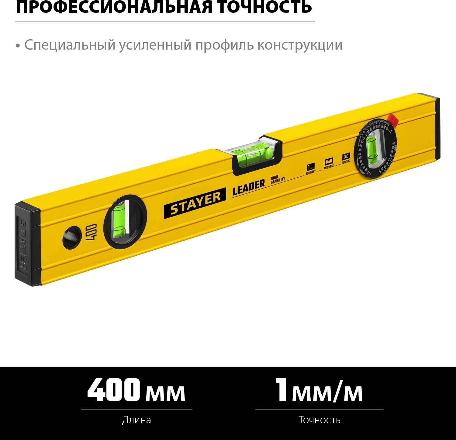 Уровень с поворотным глазком STAYER LEADER, 400 мм, усиленный профиль