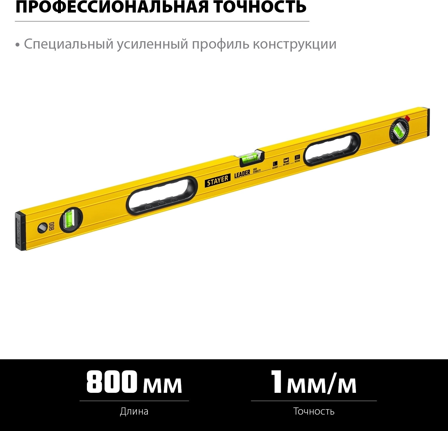 Уровень с поворотным глазком STAYER LEADER, 800 мм, усиленный профиль