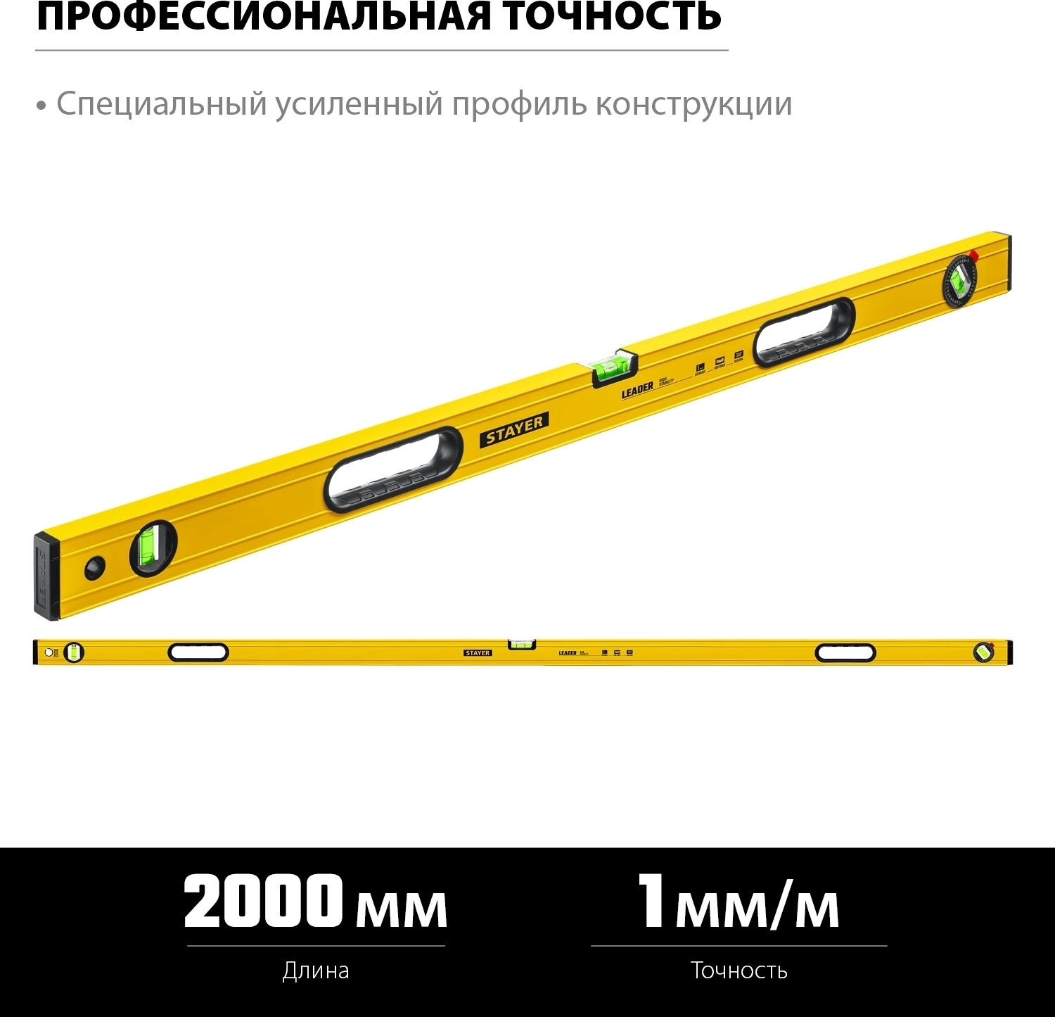 Уровень с поворотным глазком STAYER LEADER, 2000 мм, усиленный профиль