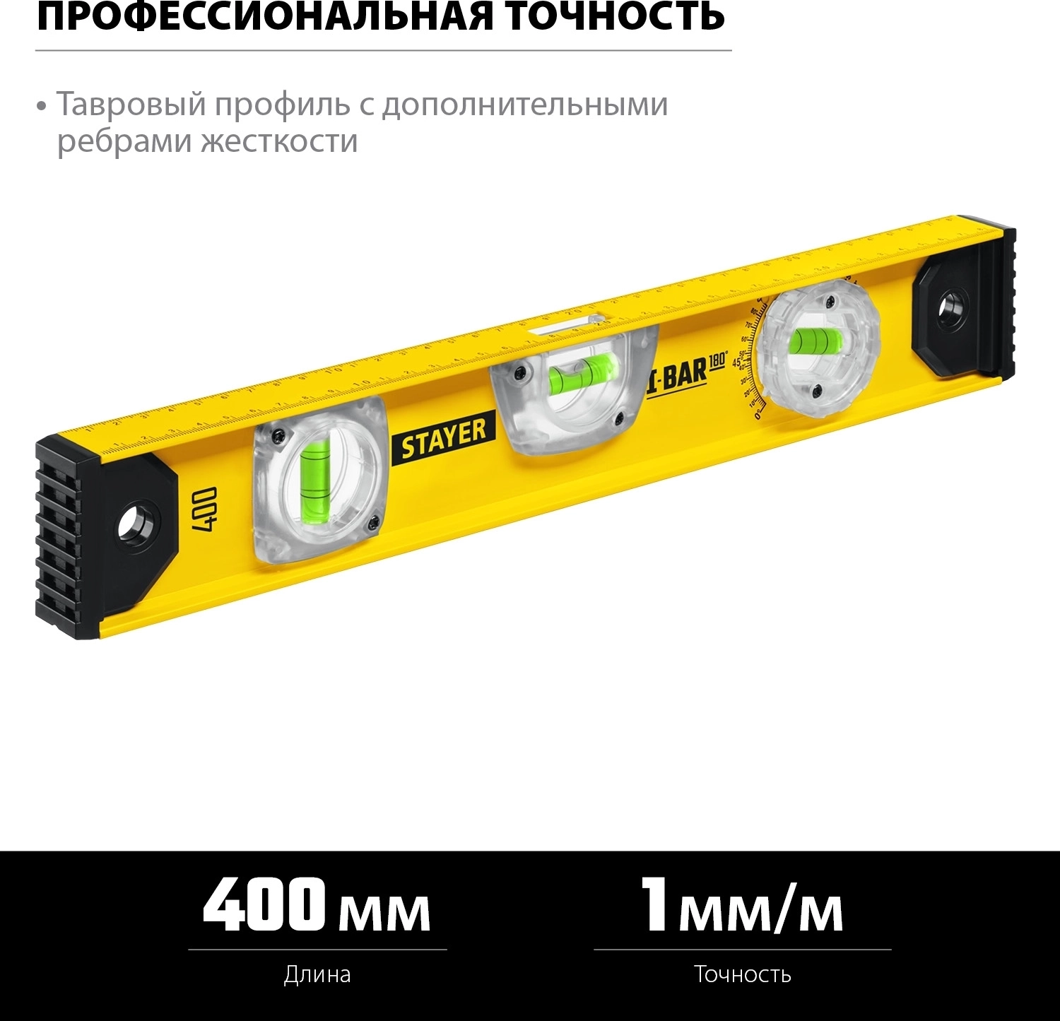 Уровень с поворотным глазком STAYER I-Bar 180˚, 400 мм, двутавровый