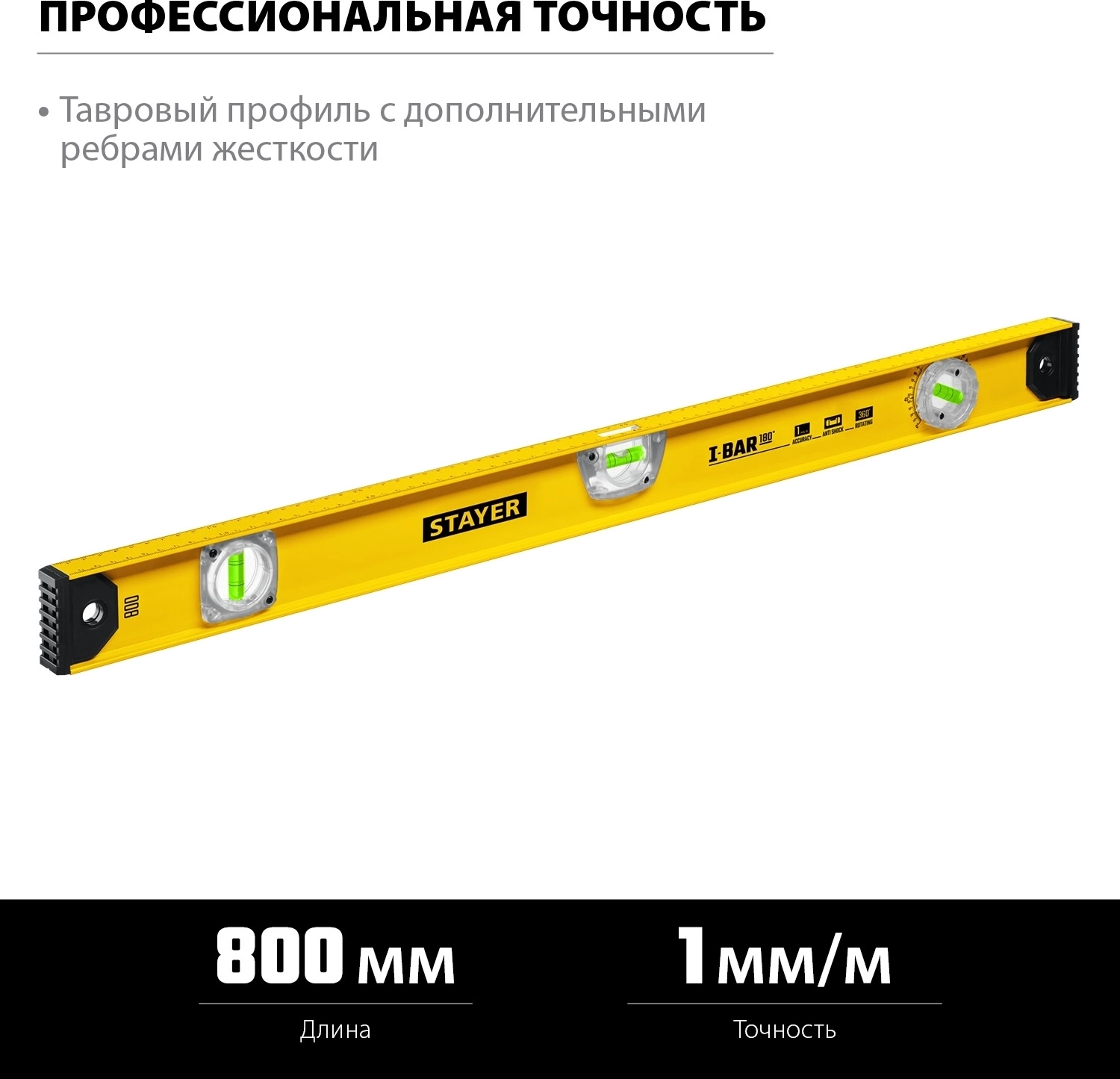 Уровень с поворотным глазком STAYER I-Bar 180˚, 800 мм, двутавровый