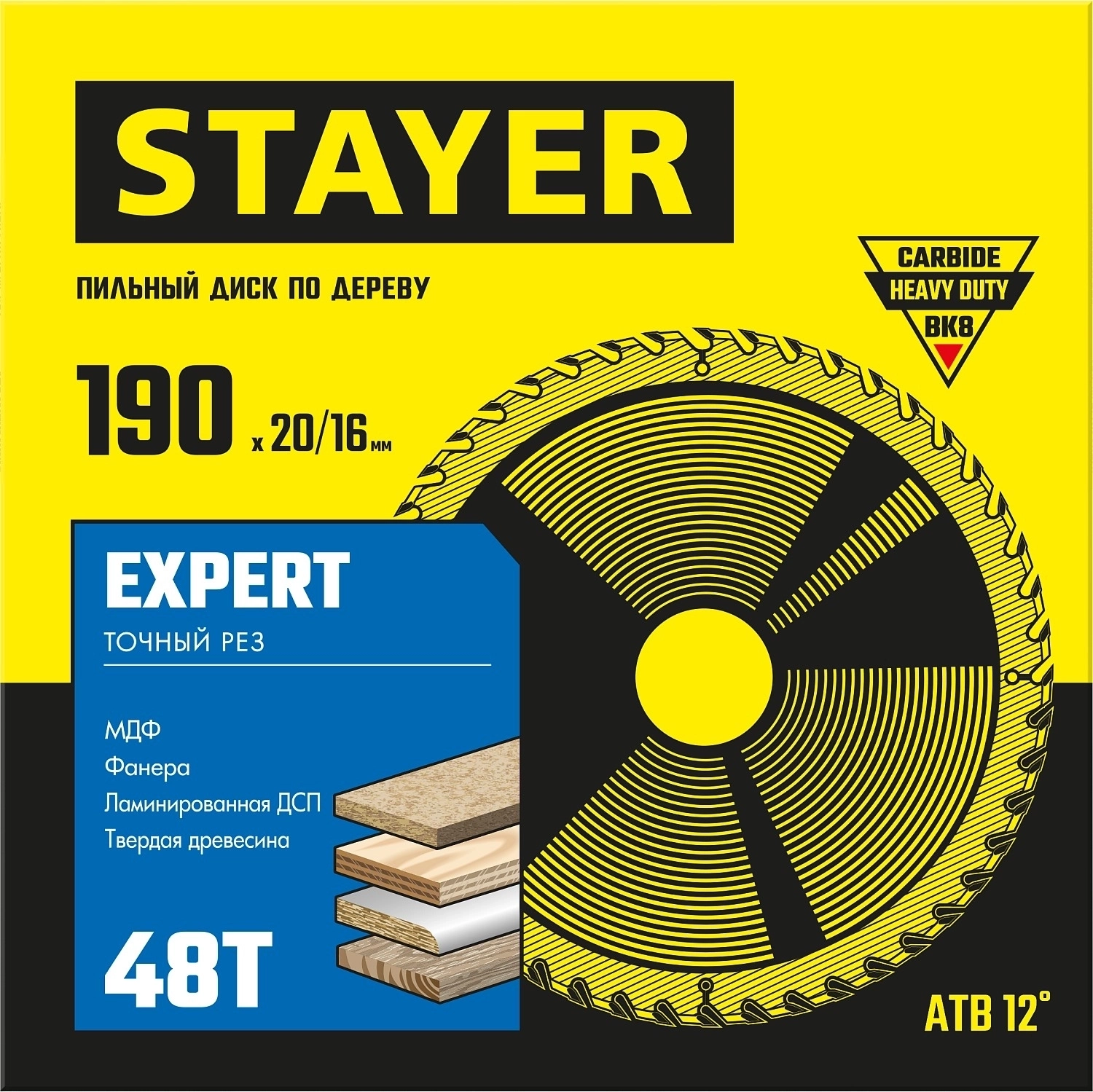Пильный диск по дереву STAYER Expert, 190 x 20/16 мм, 48Т, точный рез