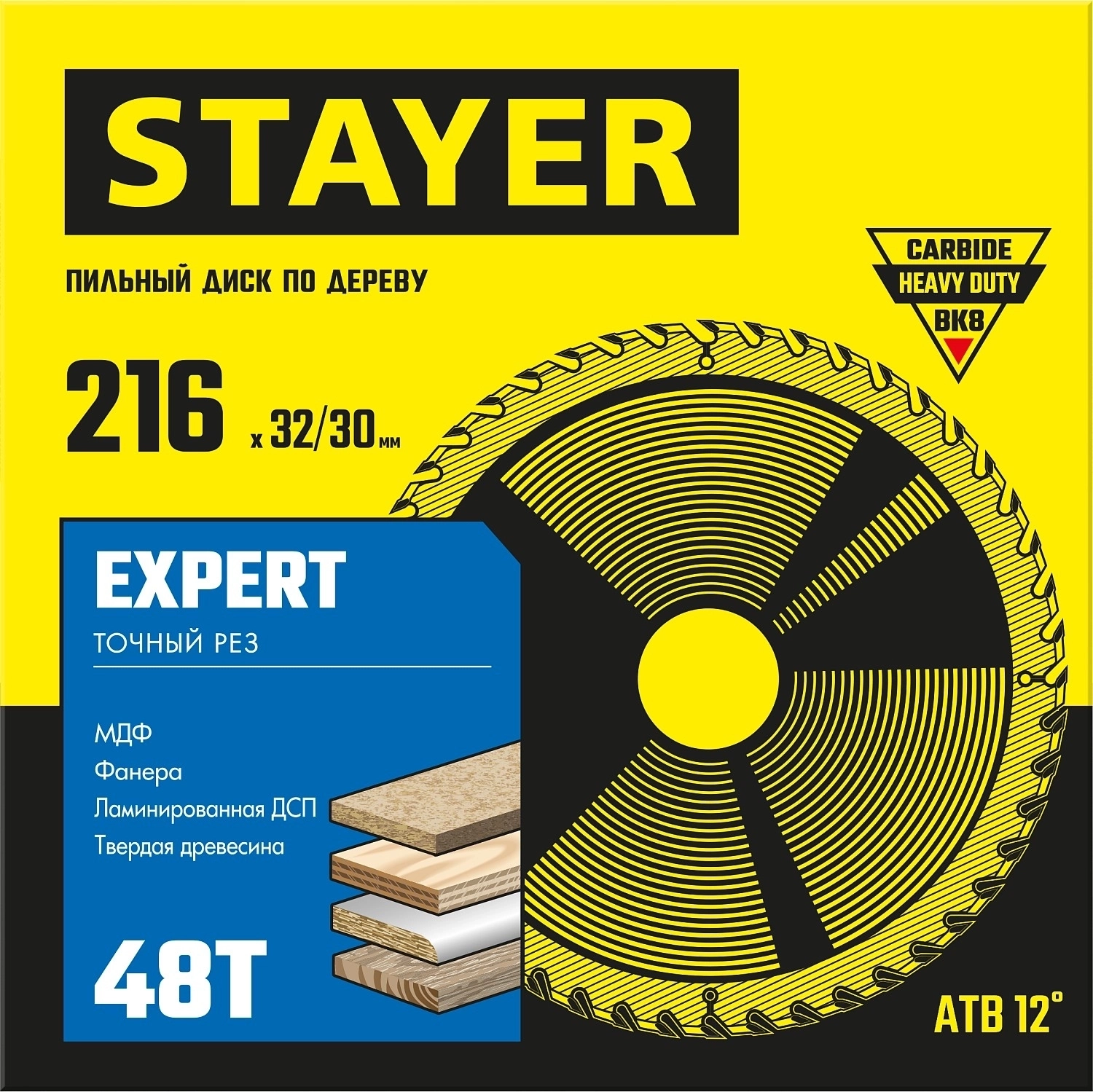 Пильный диск по дереву STAYER Expert, 216 x 32/30 мм, 48Т, точный рез