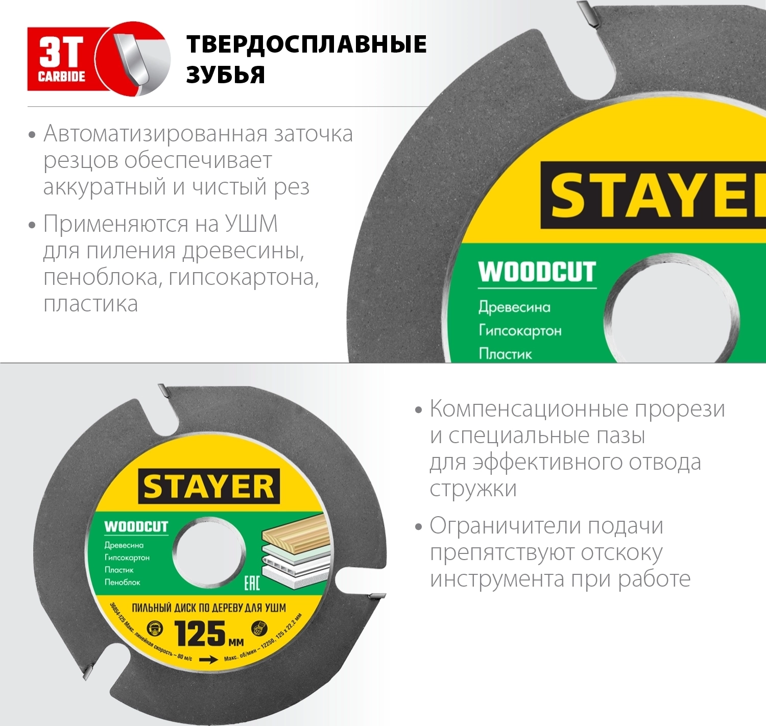Пильный диск по дереву STAYER WOODCUT, 125 х 22.2 мм, 3 резца, для УШМ
