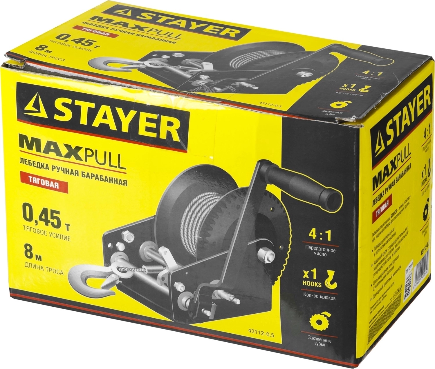 Ручная барабанная тросовая лебедка STAYER MAXPull, 0.5 т, 8 м