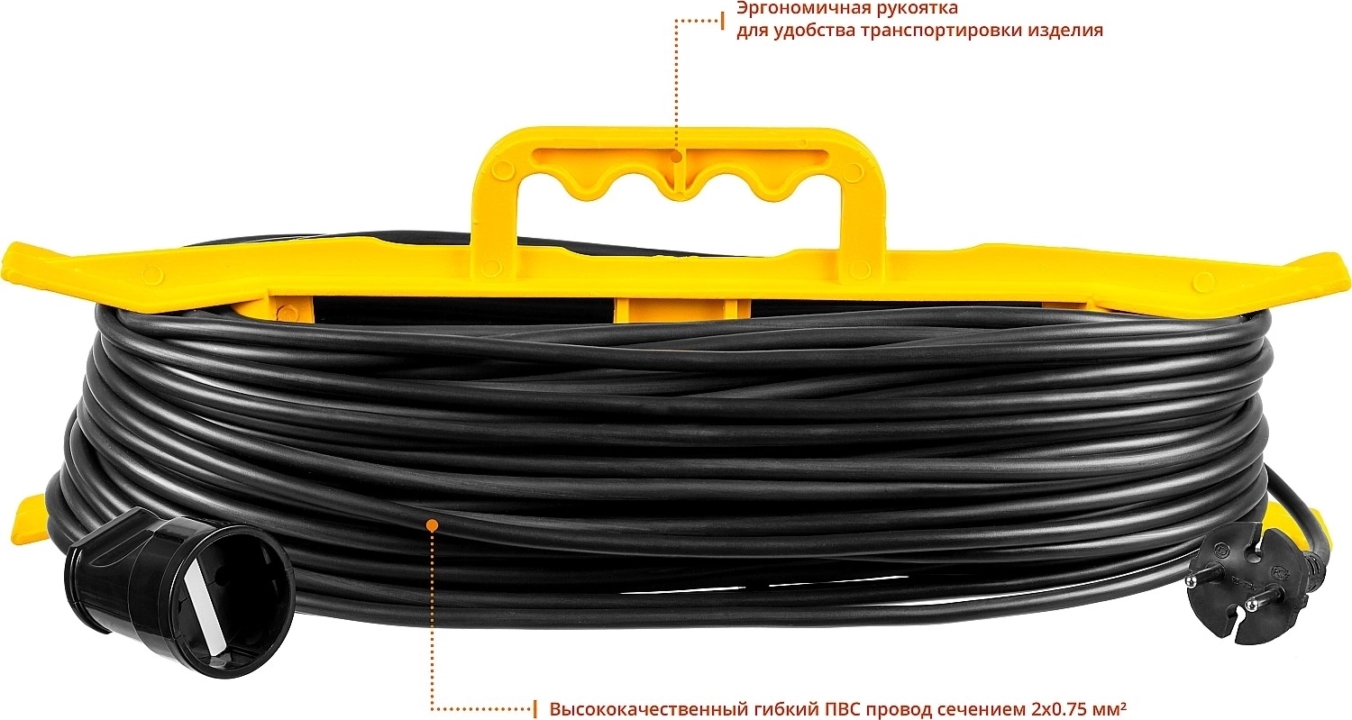 Силовой удлинитель-шнур на рамке STAYER MF-207, ПВС, 2 x 0.75 мм2, 50 м, 2200 Вт