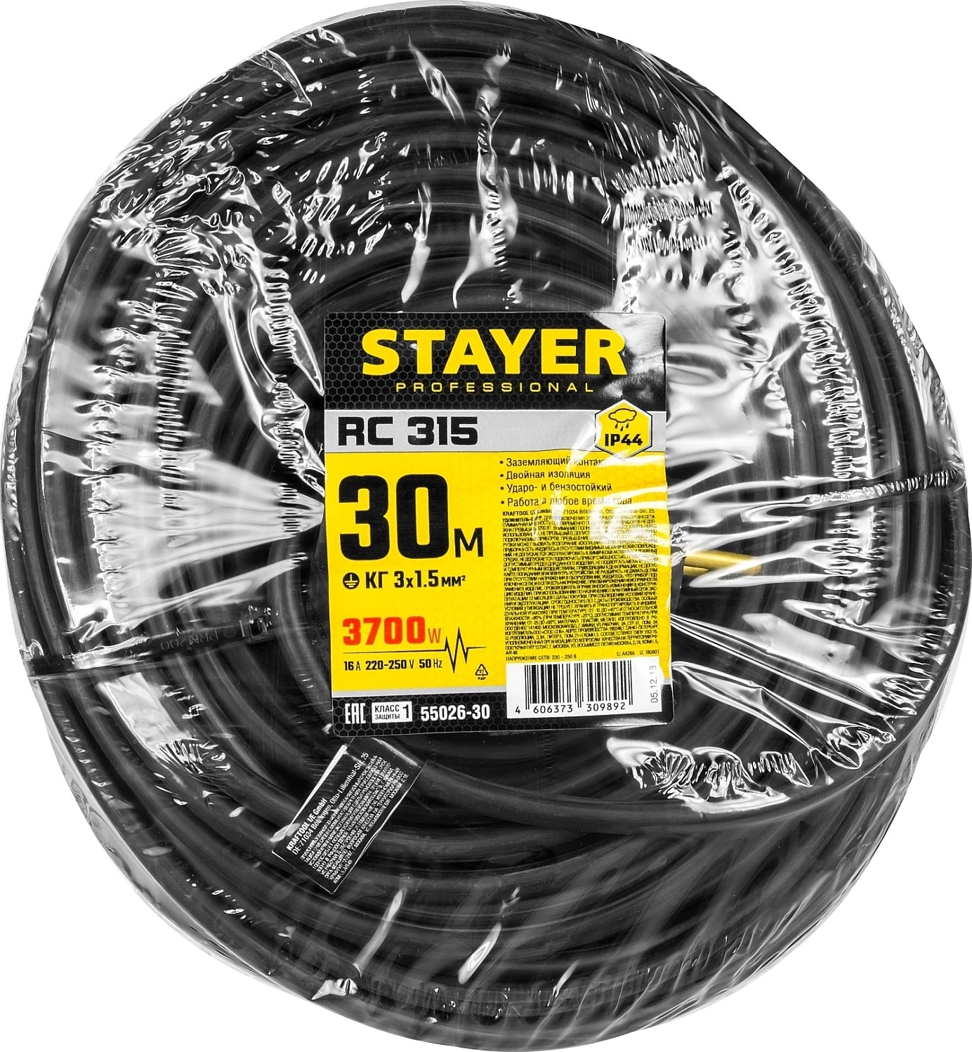 Силовой удлинитель-шнур STAYER RC-315, КГ, 3 x 1.5 мм2, 30 м, 3700 Вт, IP44