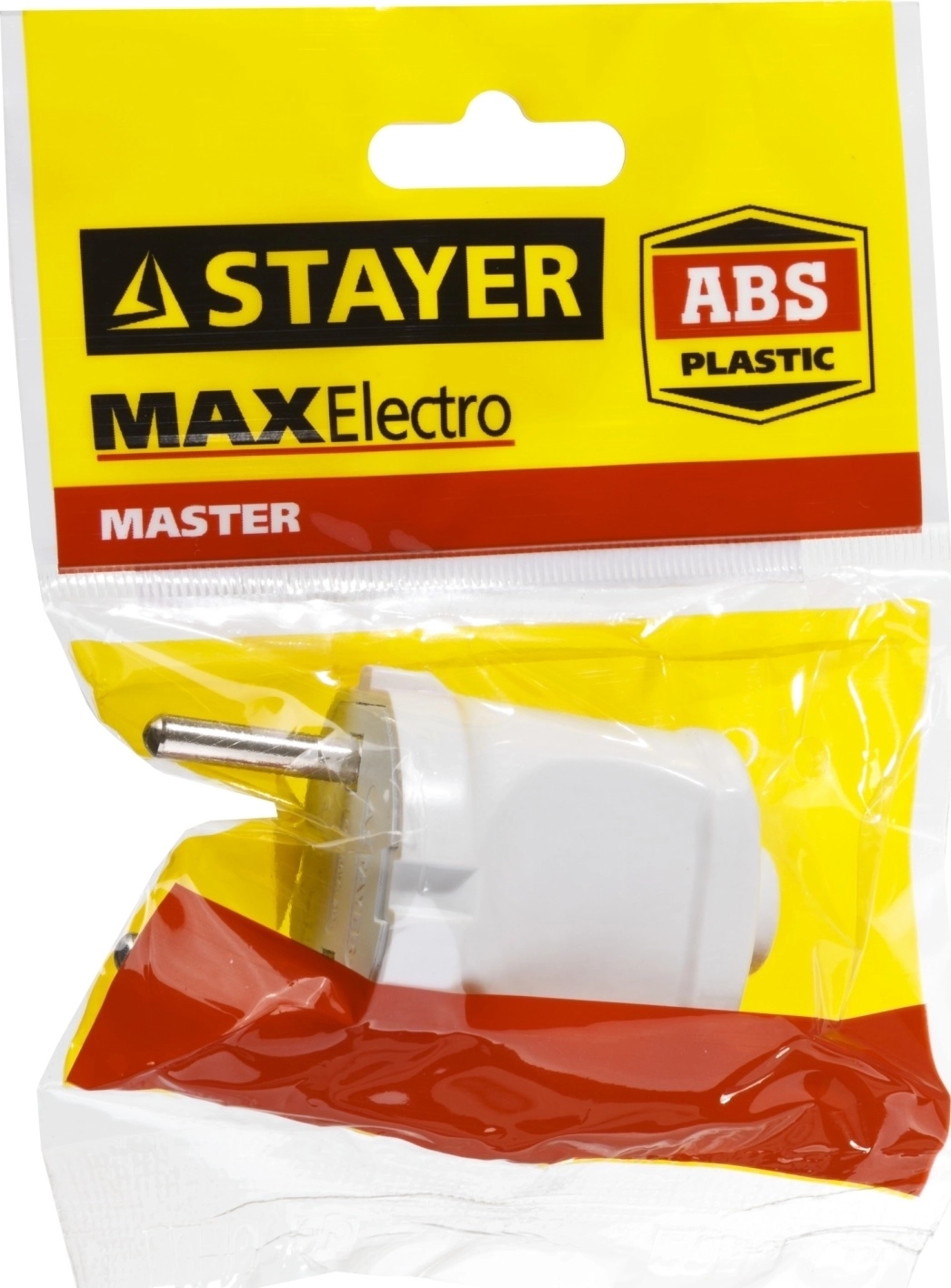 Прямая вилка STAYER MAXElectro, белая, 6 А/220 В, 1300 Вт