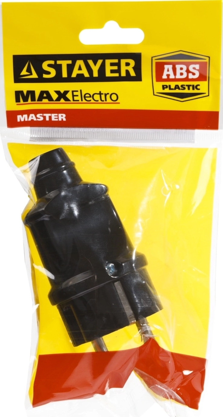 Прямая вилка STAYER MAXElectro, черная, 16 А/220 В, 1300 Вт
