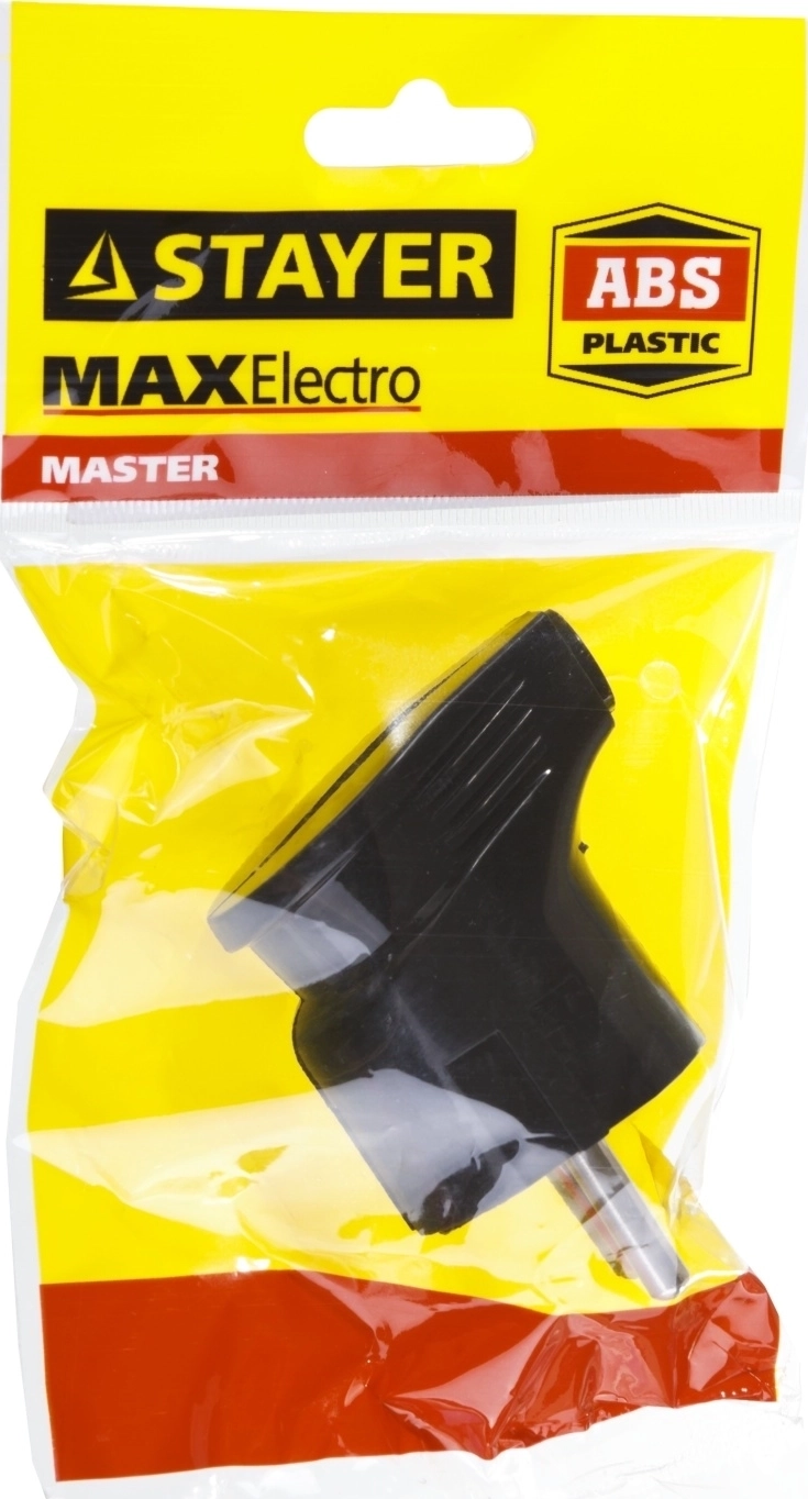 Угловая вилка STAYER MAXElectro, черная, 16 А/220 В, 1300 Вт