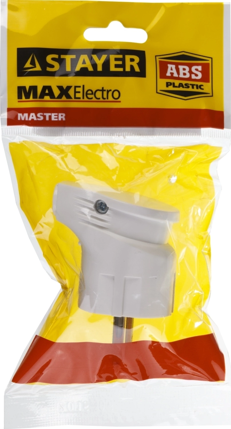 Угловая вилка STAYER MAXElectro, белая, 16 А/220 В, 1300 Вт