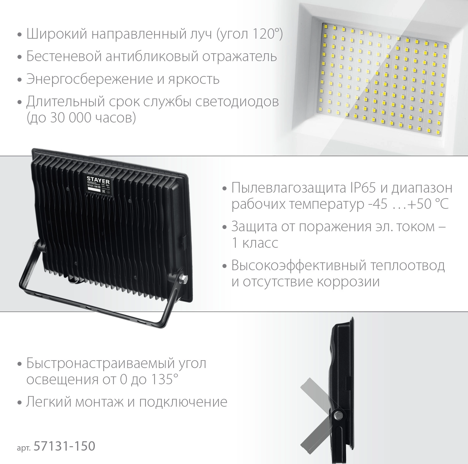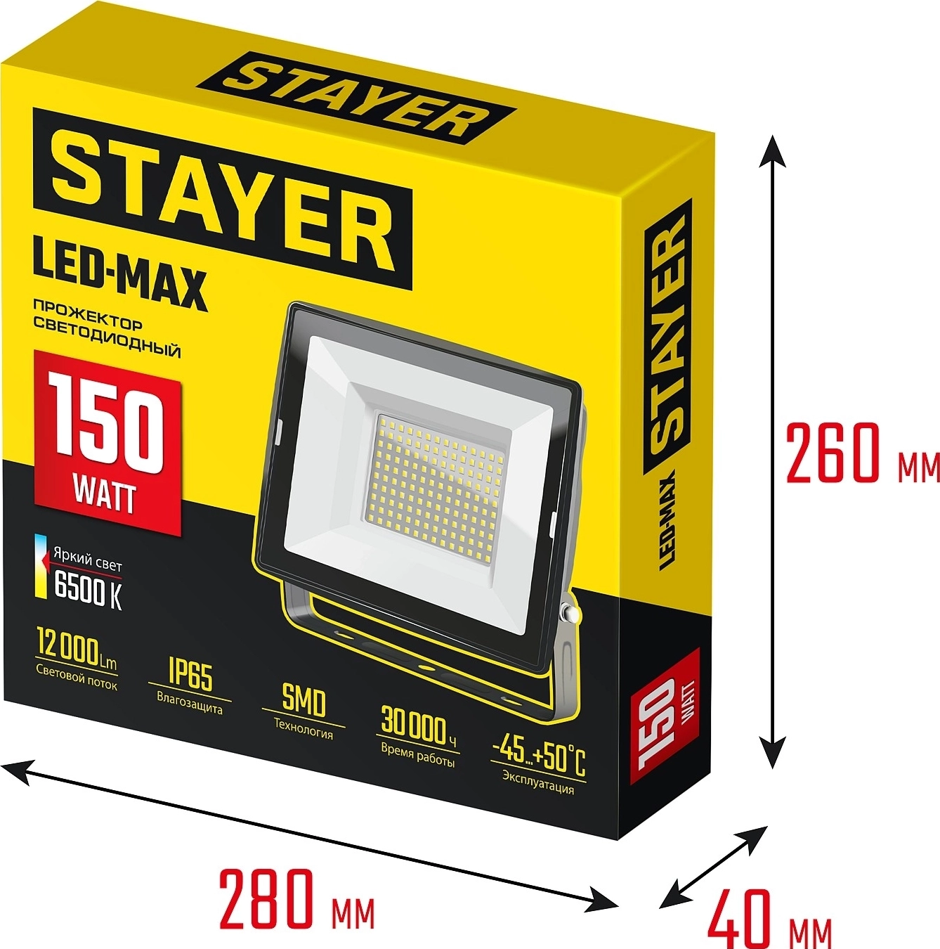 Светодиодный прожектор STAYER LED-MAX, 150 Вт, 6500K, IP 65