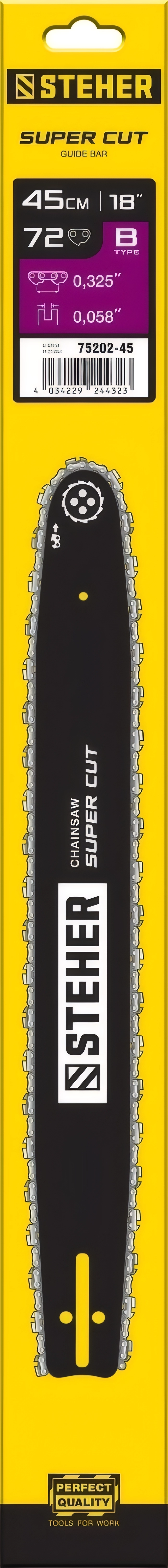 Шина для бензопил STEHER type B, шаг 0.325″, паз 1.5 мм, 45 см