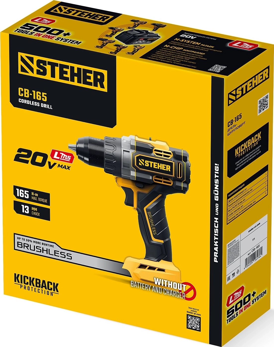 Бесщеточная дрель-шуруповерт STEHER 20 В, 165 Н·м, без АКБ (LMS)