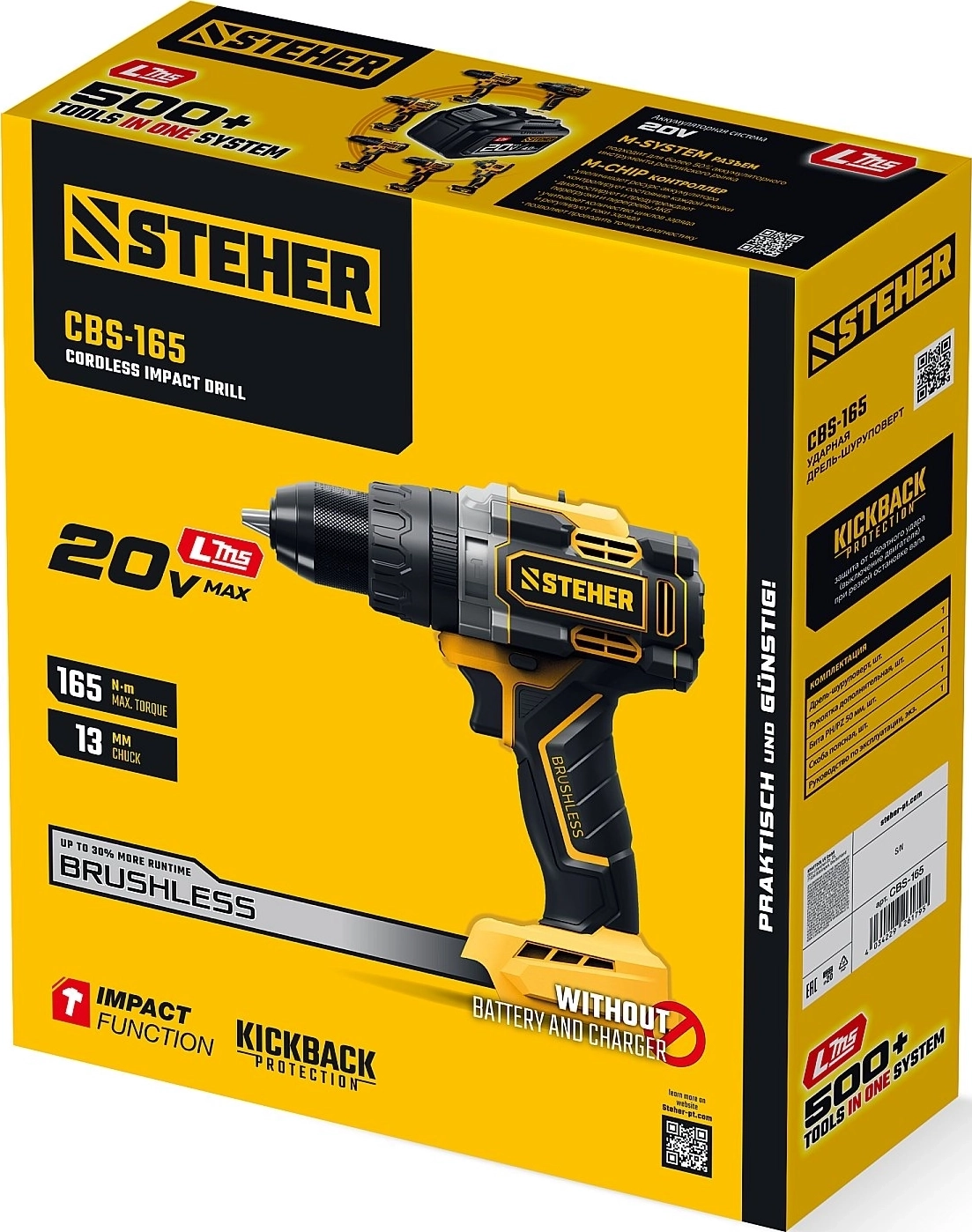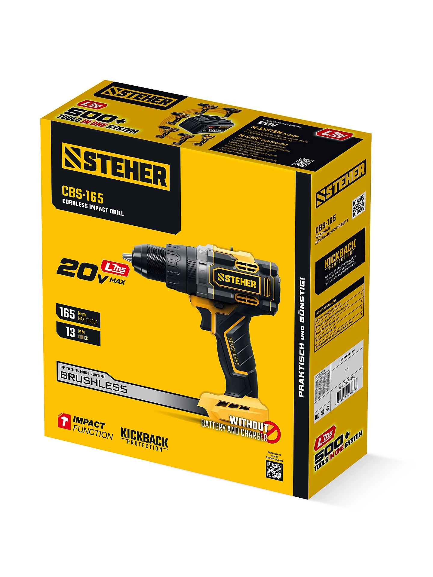 Бесщеточная ударная дрель-шуруповерт STEHER 20 В, 165 Н·м, без АКБ (LMS)