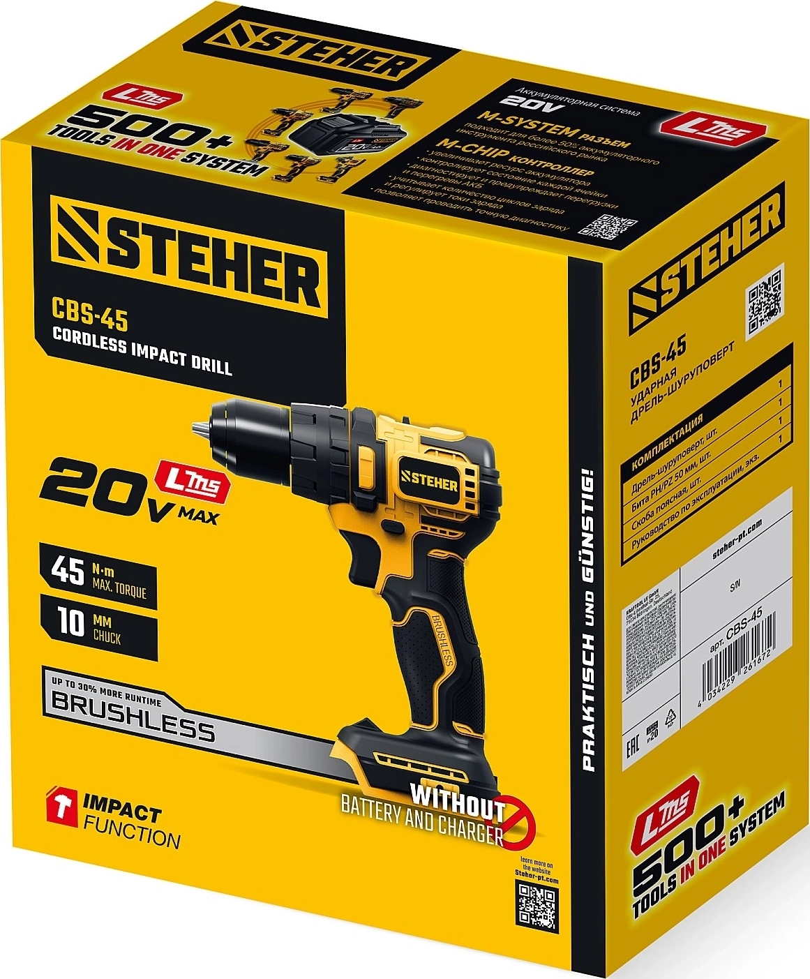 Бесщеточная ударная дрель-шуруповерт STEHER 20 В, 45 Н·м, без АКБ (LMS)