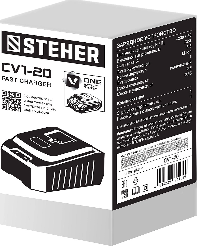 Поддерживаемые артикулы аккумуляторов: V1-20-2, V1-20-4
