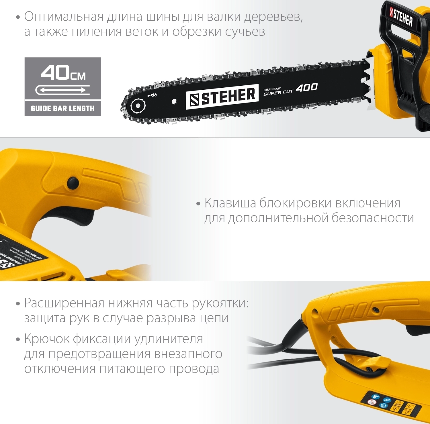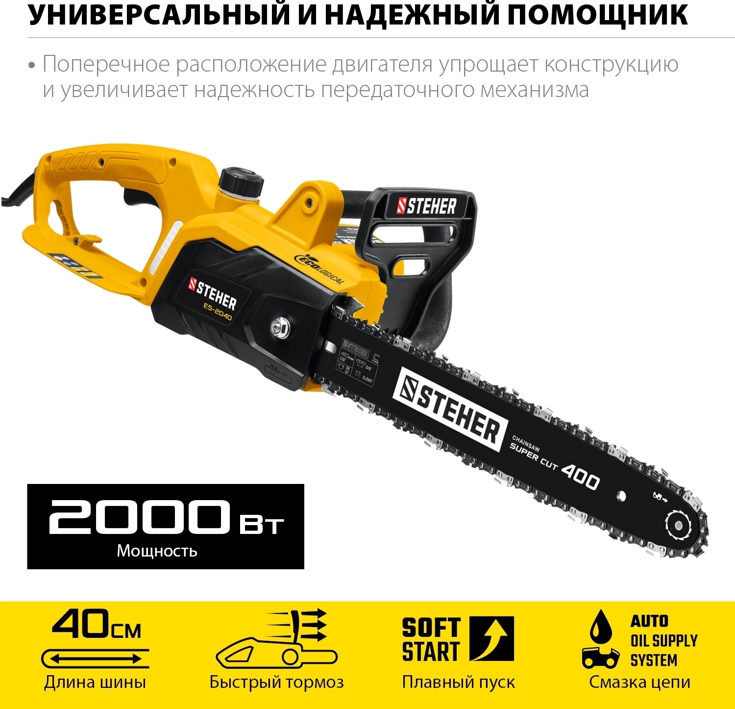 Электрическая цепная пила STEHER 2000 Вт, 40 см шина