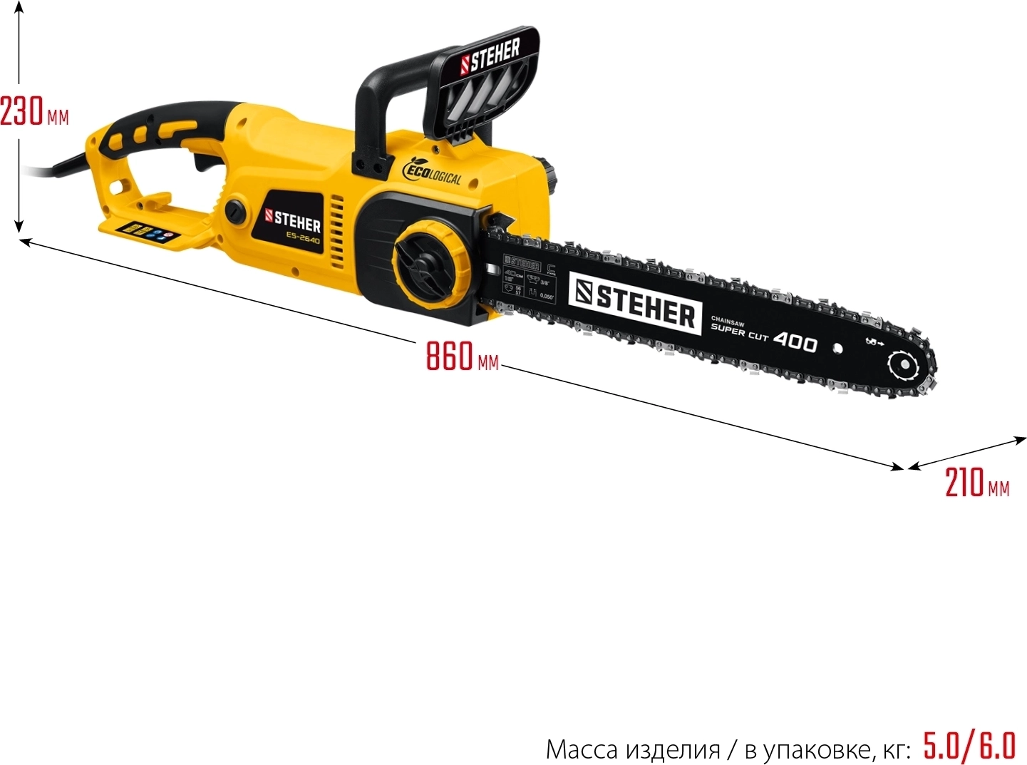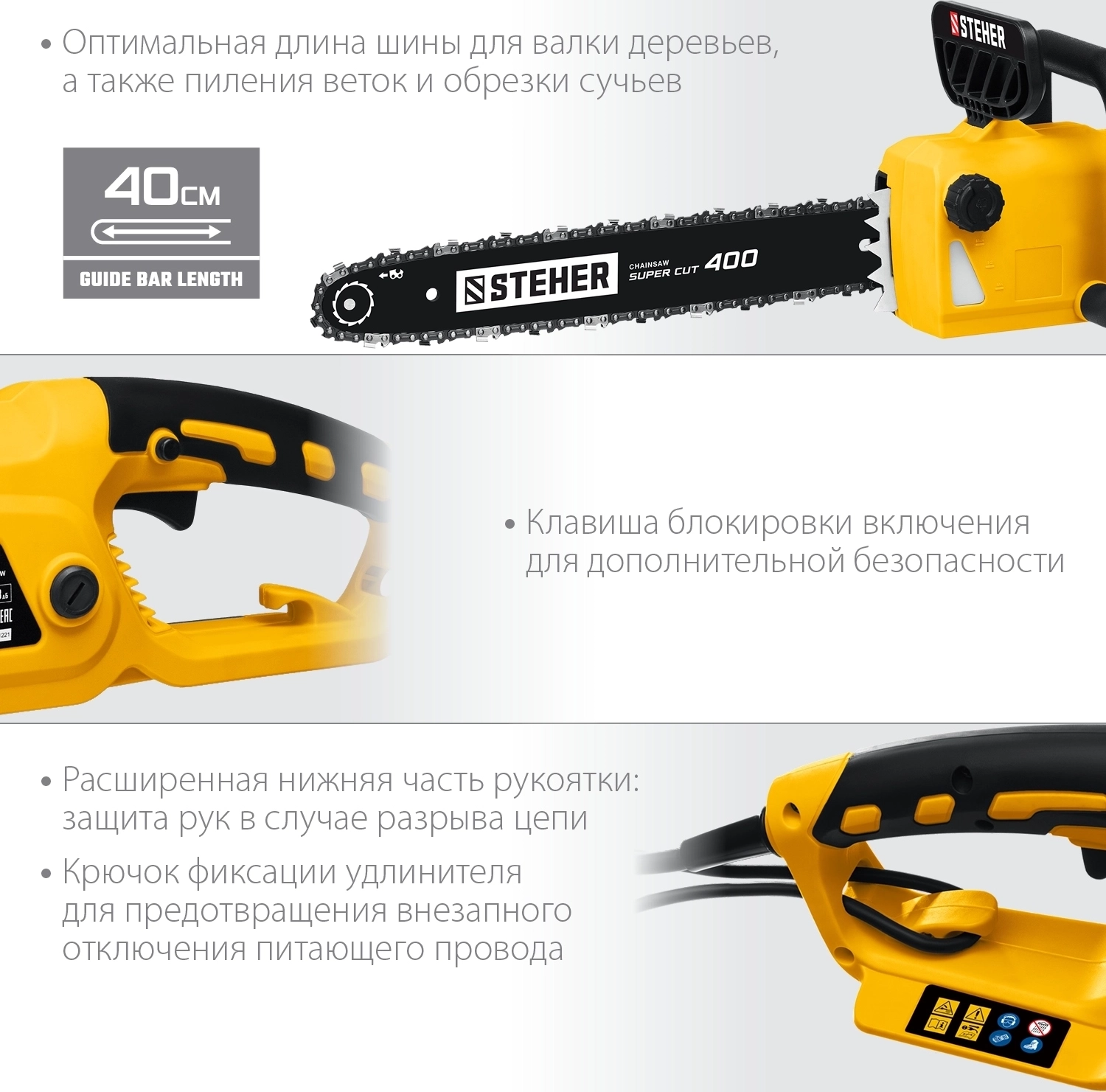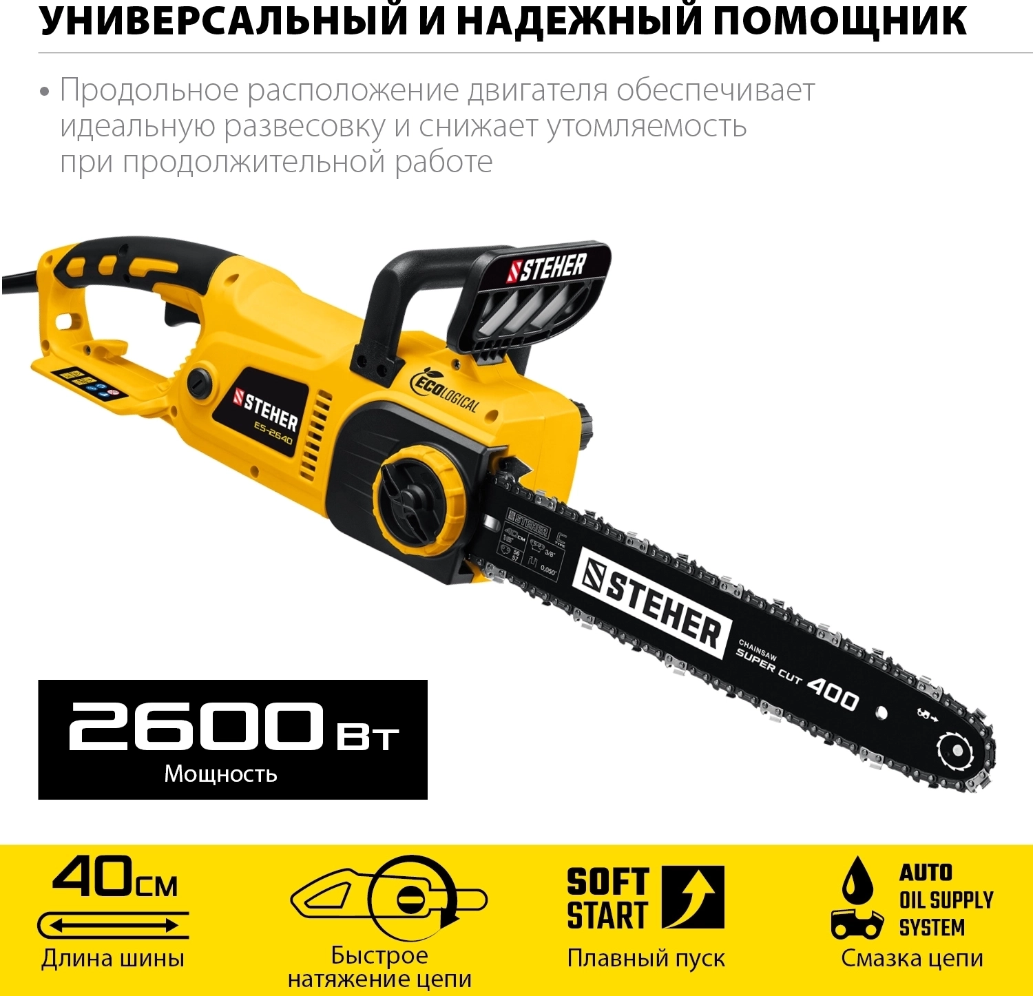 Электрическая цепная пила STEHER 2600 Вт, 40 см шина