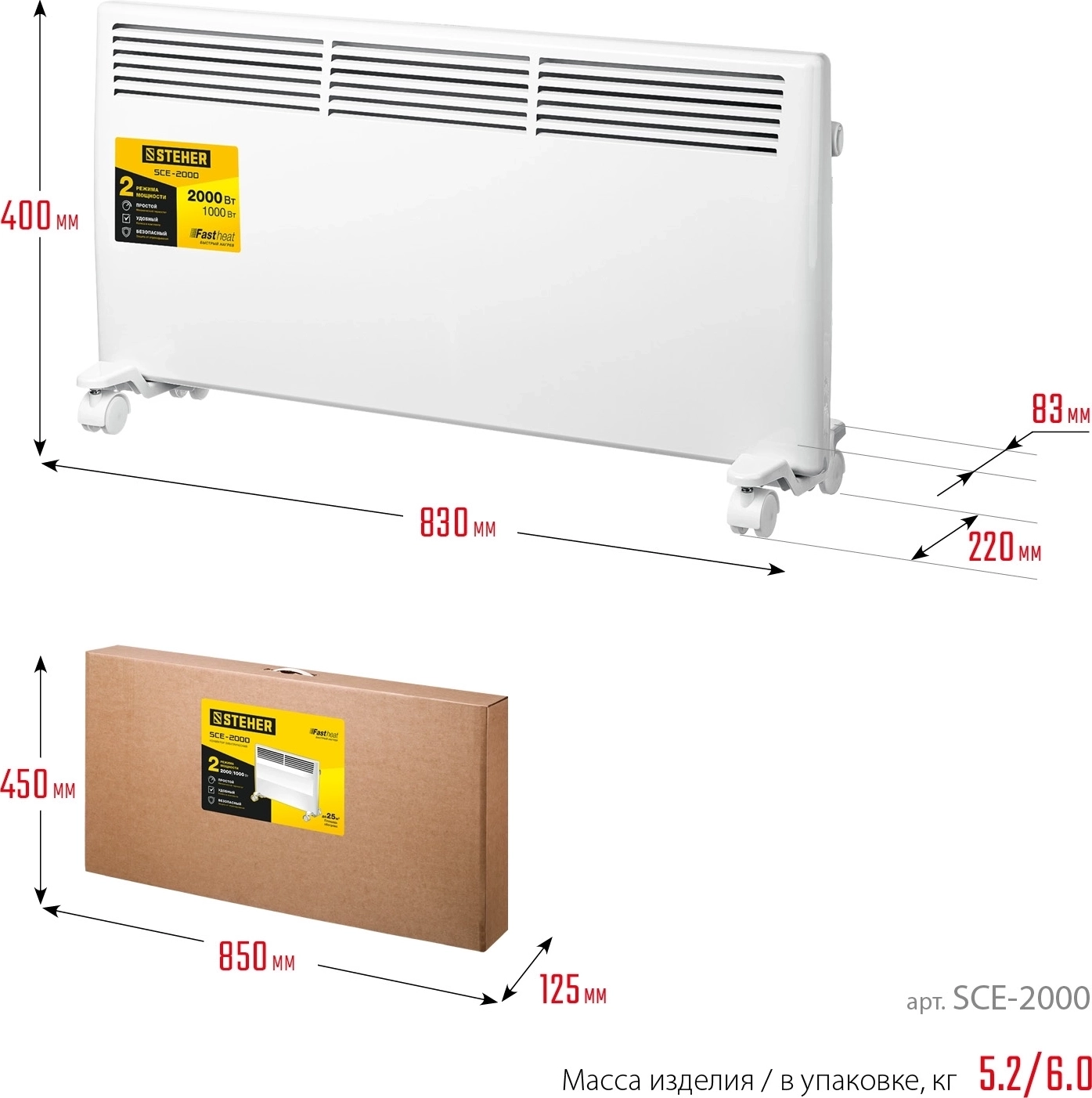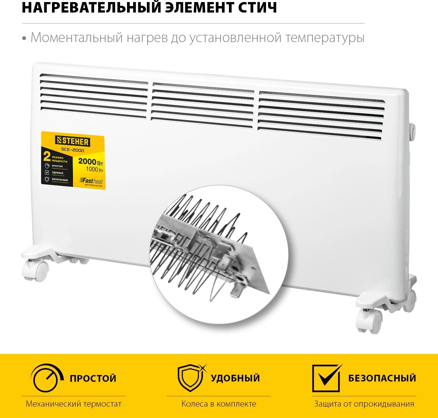Электрический конвектор STEHER мощностью 2000 Вт - подойдет для обогрева любых домашних и офисных помещений площадью до 25 м2.