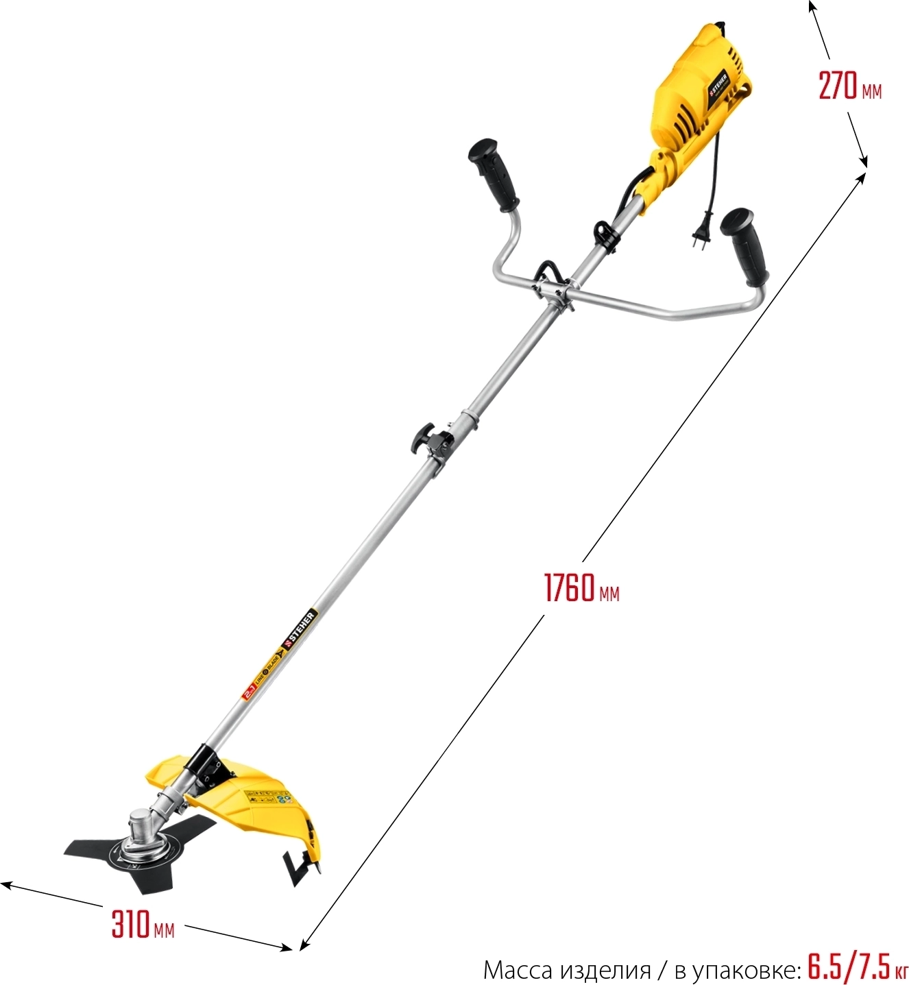 - Идеальная развесовка (благодаря верхнему расположению двигателя) и плечевой ремень увеличивают маневренность и облегчают эксплуатацию