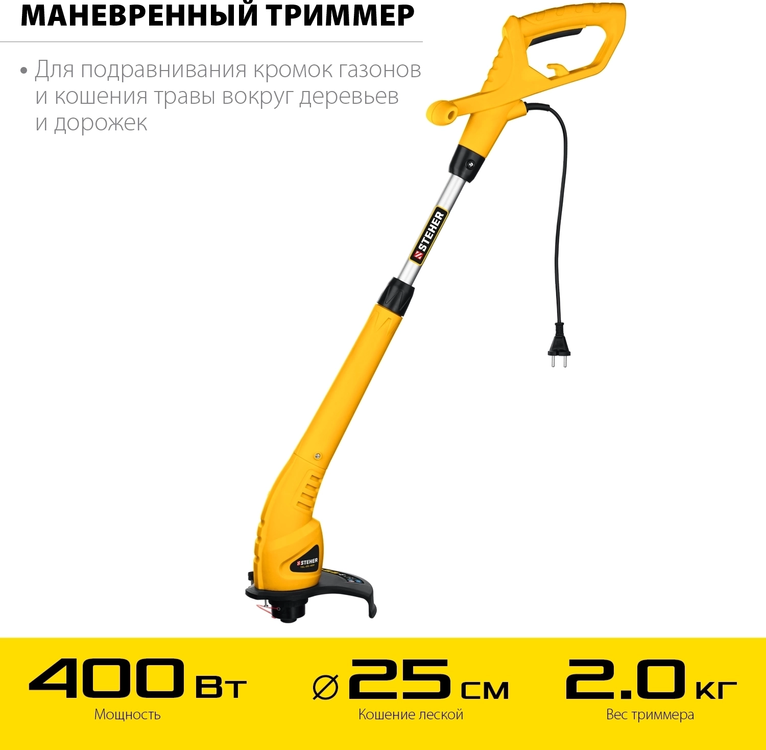 Сетевой триммер STEHER 400 Вт, ш/с 25 см