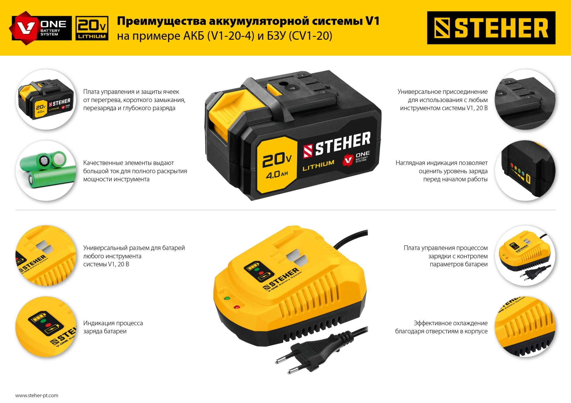 Аккумуляторная батарея STEHER V1, 20 В, 4.0 А·ч