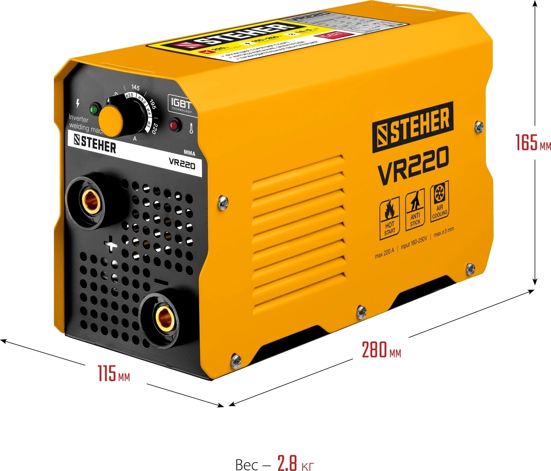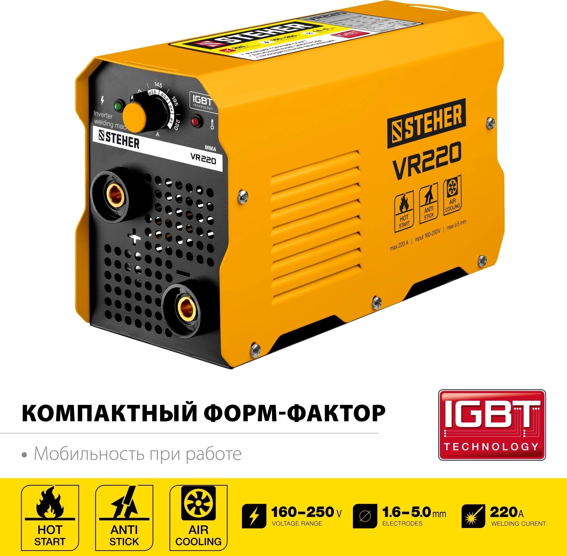 Сварочный аппарат инверторный STEHER ММА 220 А, электрод до d5.0 мм