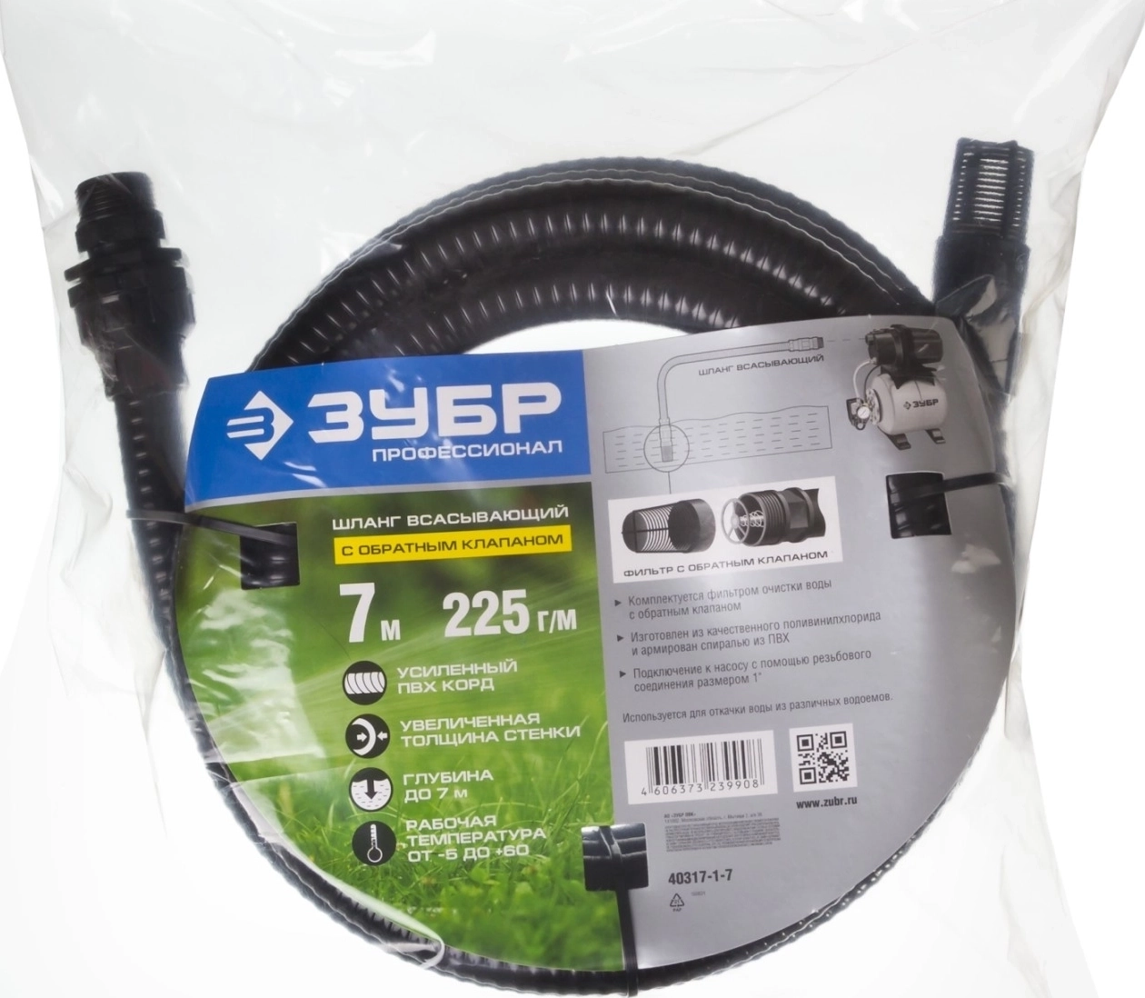 Всасывающий шланг 1″ 7 м с фильтром и обратным клапаном арт. 106455