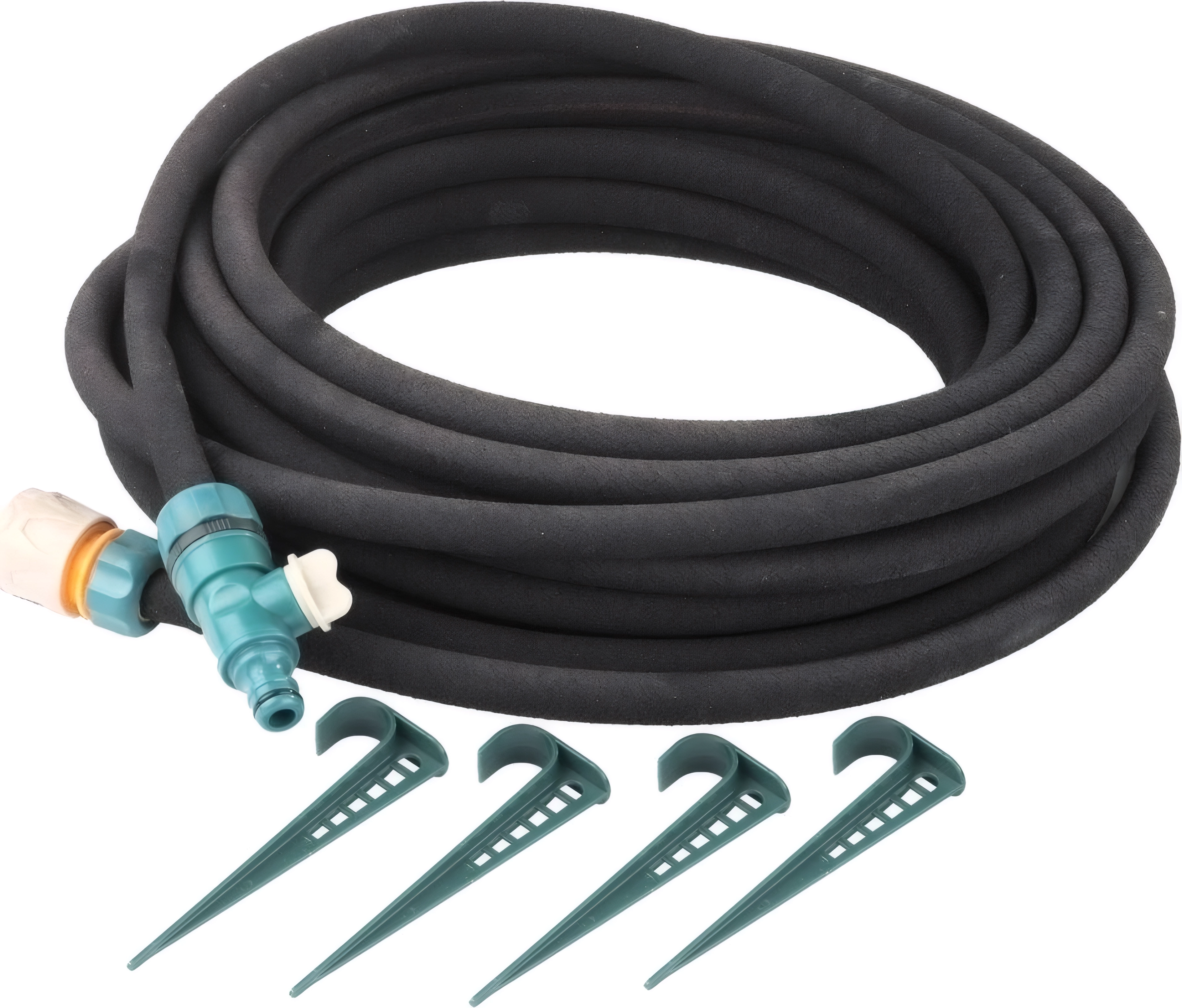 Сочащийся шланг 1/2″ x 15 м, в комплекте с клапаном, колышками и соединителем c автостопом арт. 106445