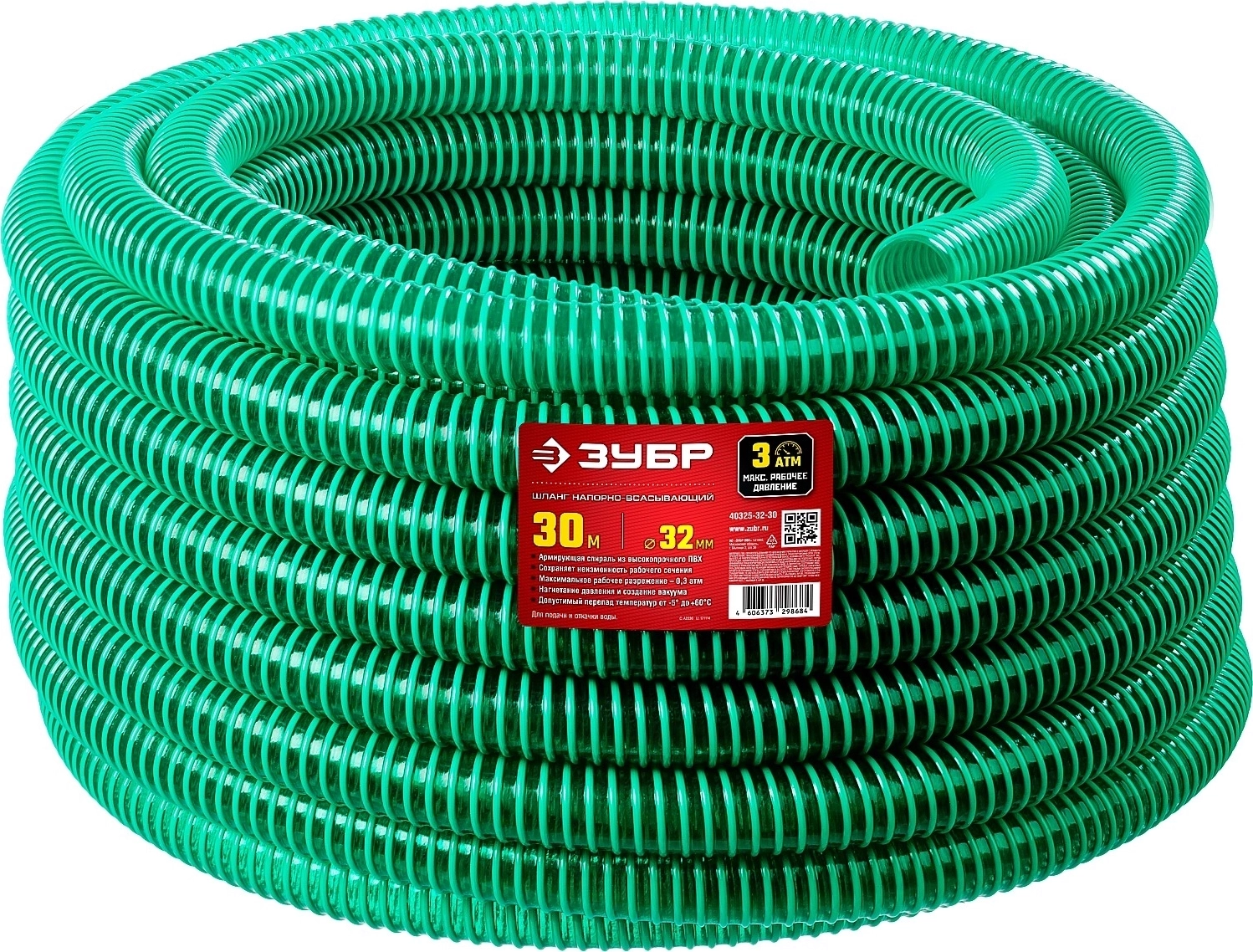 Напорно-всасывающий шланг 32 мм x 30 м, 3 атм, со спиралью ПВХ арт. 106461