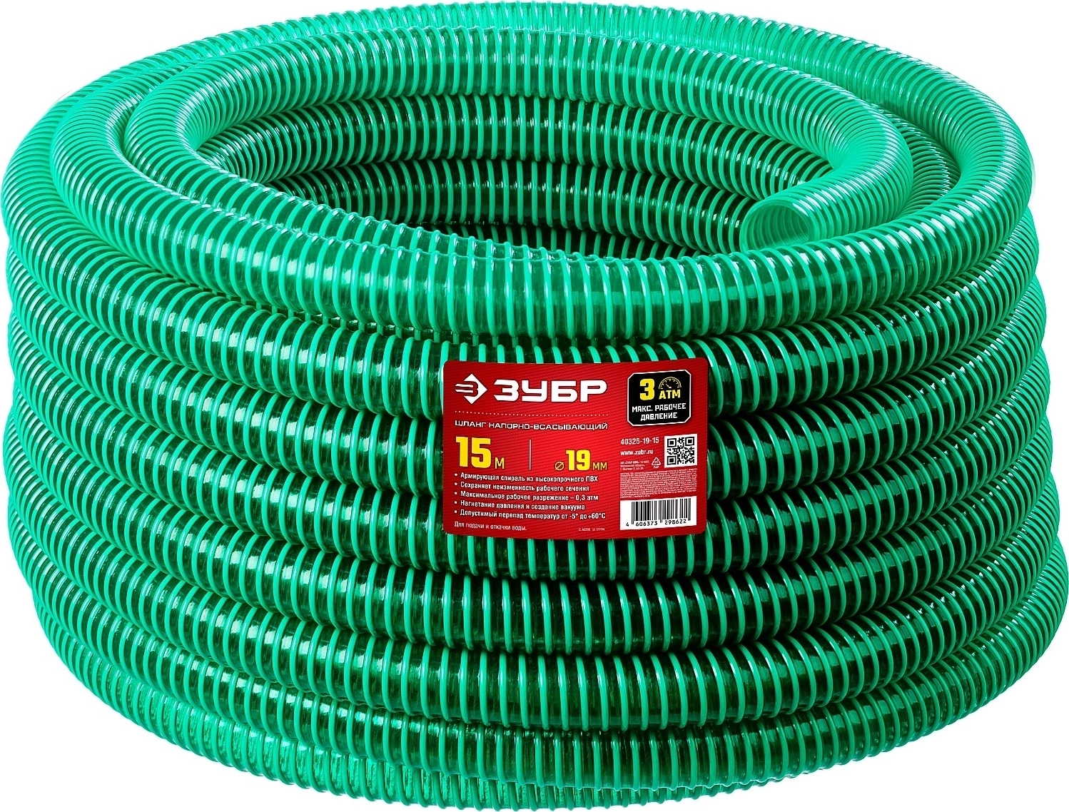 Напорно-всасывающий шланг 19 мм x 15 м, 3 атм, со спиралью ПВХ арт. 106456
