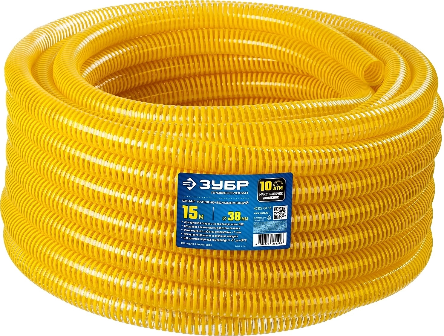 Напорно-всасывающий шланг 38 мм x 15 м 10 атм со спиралью ПВХ арт. 106470